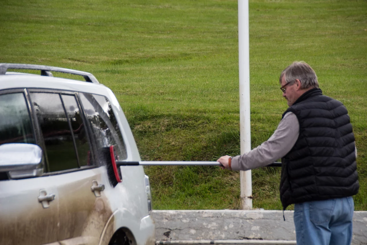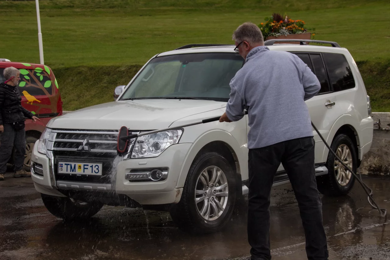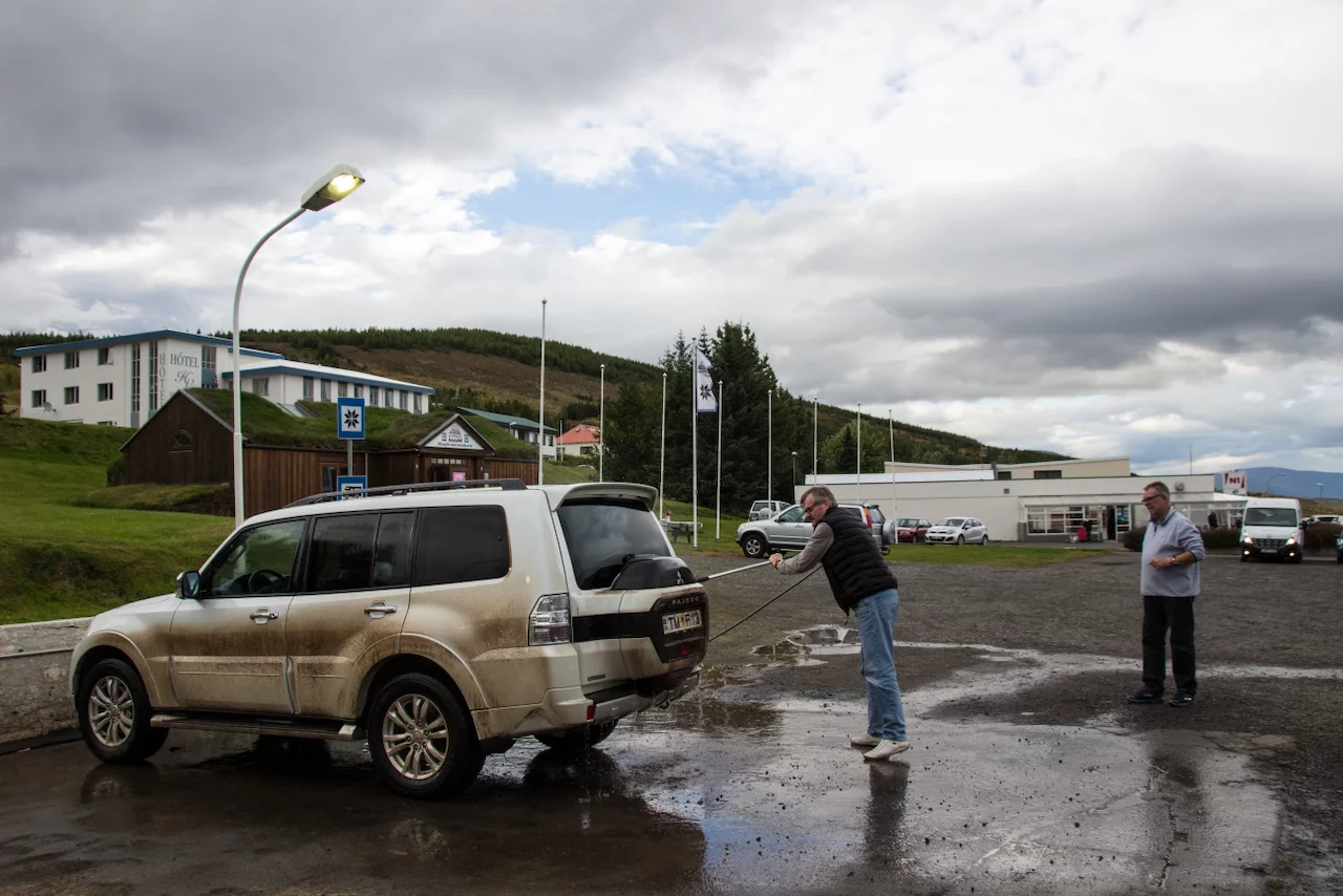 Was echt gut ist in Island, fasst überall wo man von einer Off-Road tour auf eine Hauptstraße trifft, gibt es kostenlose Waschplätze, an denen man dieFahrzeuge wieder in einen sauberen und ansehnlichen Zustand versetzen kann. Das hatte unser gutes Stück auch dringend nötig. Glücklicherweise war der Waschplatz gleich neben unserem Hotel.