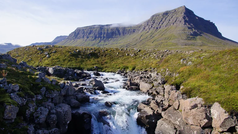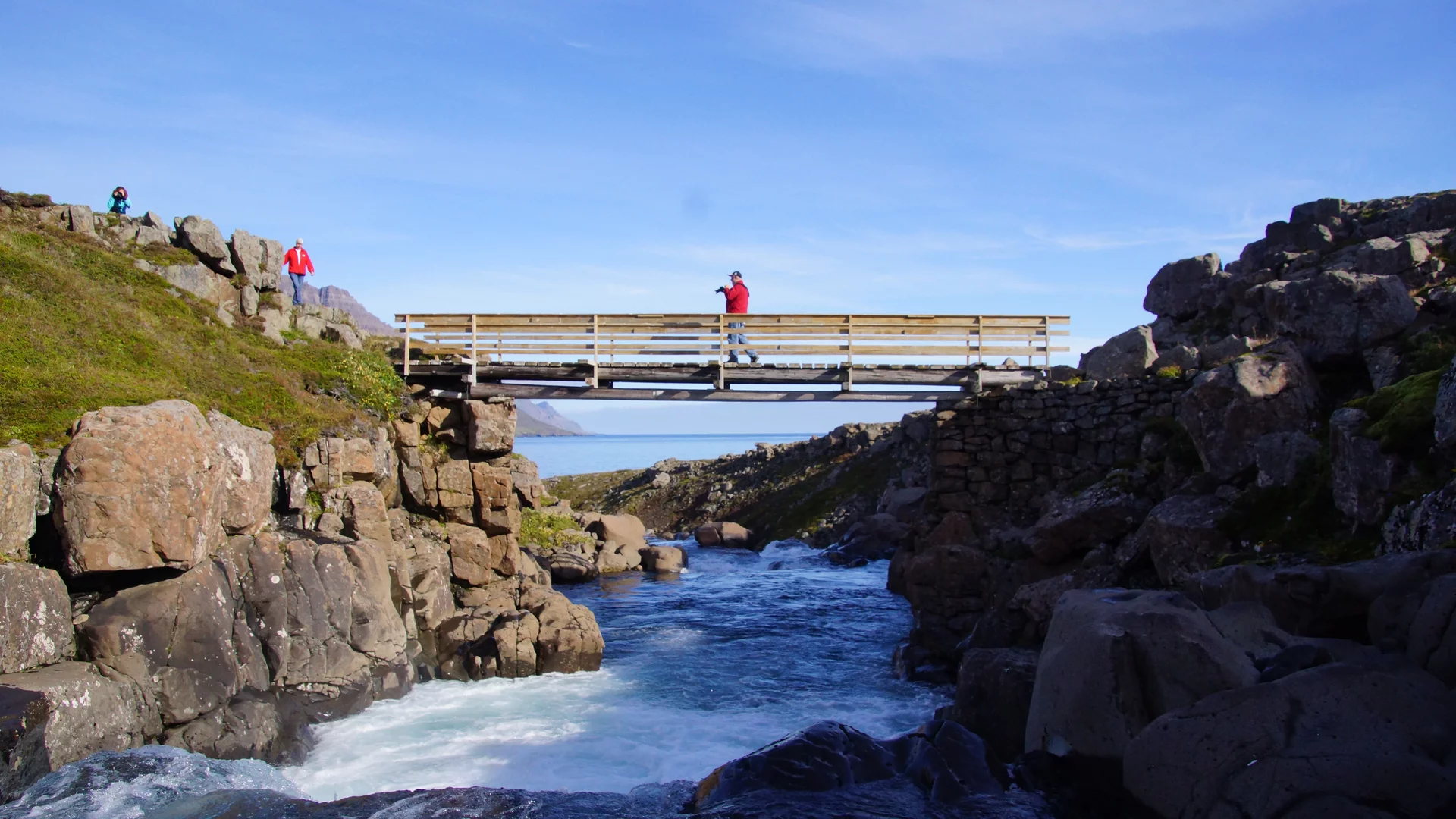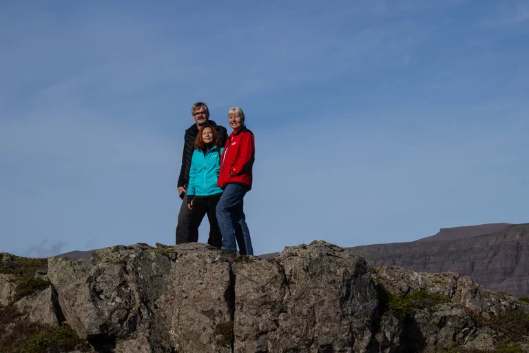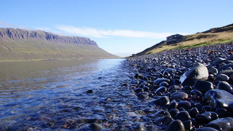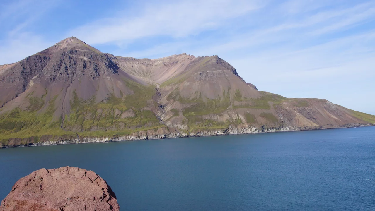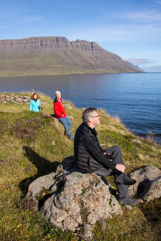 Endlich ist sie da, die Sonne. Die perfekte Kulisse für unsere Tagestour durch den Nordosten. Es galt zunächst, "unseren" Fjord zu erkunden und so sind wir dann langsam über die Schotterstraße am rechten Ufer bis zur Fjordmündung gefahren. Langsam war hier das Zauberwort, denn abgesehen von dem schlechten Zustand der Straße (ohne 4x4 geht da nix), können einem auch schnell mal unvorhergesehene tierische Hindernisse den Weg versperren, zumindest temporär. Es hat schon eine geraume Zeit gedauert, bis wir die sture Kuh zur Freigabe der Straße bewegen konnten. Hier zeigt sich Mutter Natur von Ihrer schönsten Seite und natürlich sind die Kameras fast heiß gelaufen.