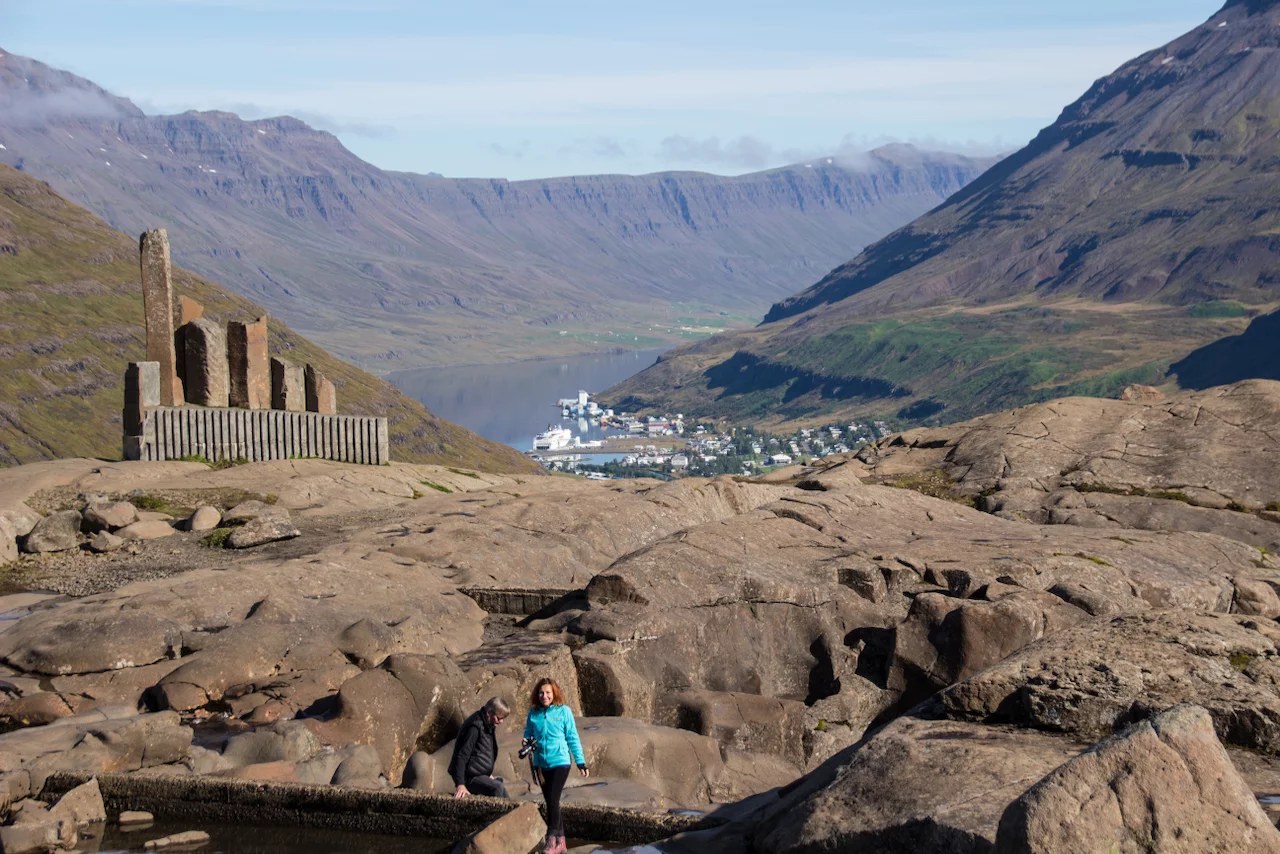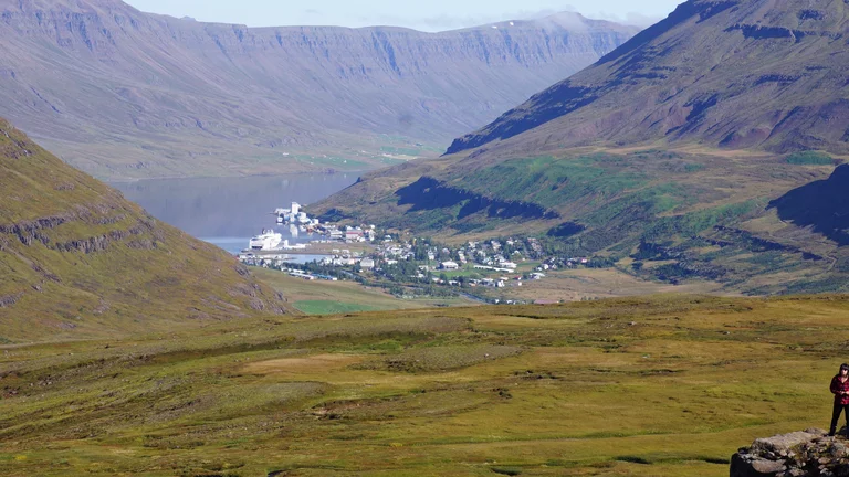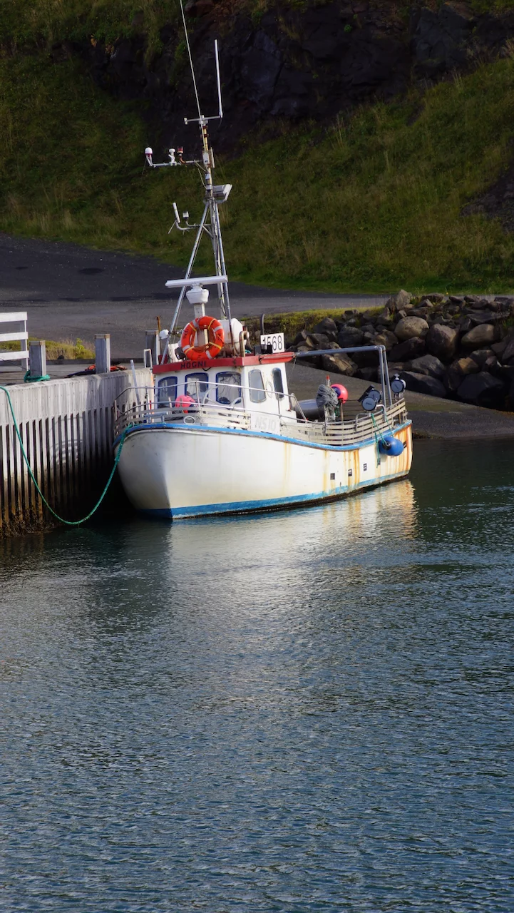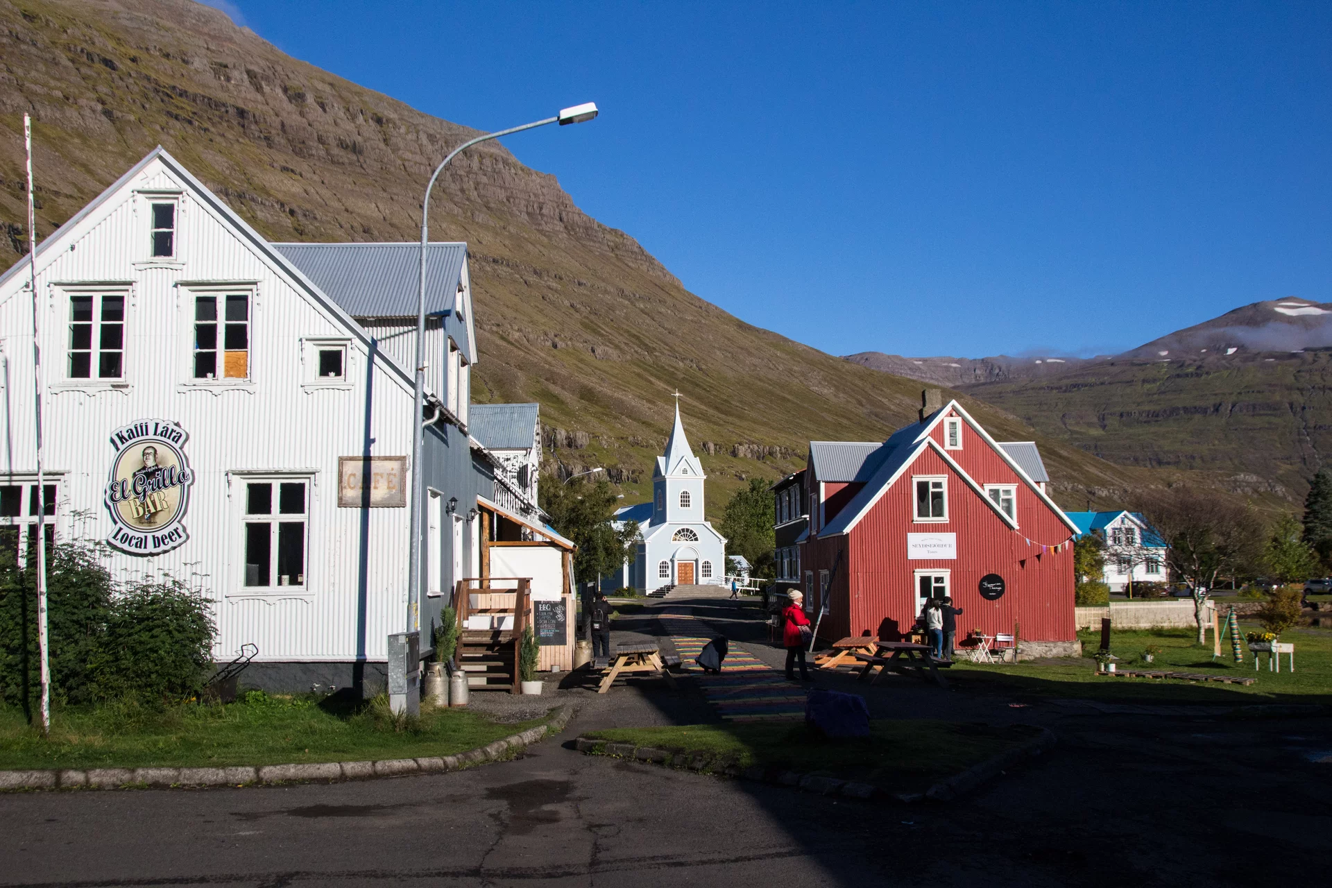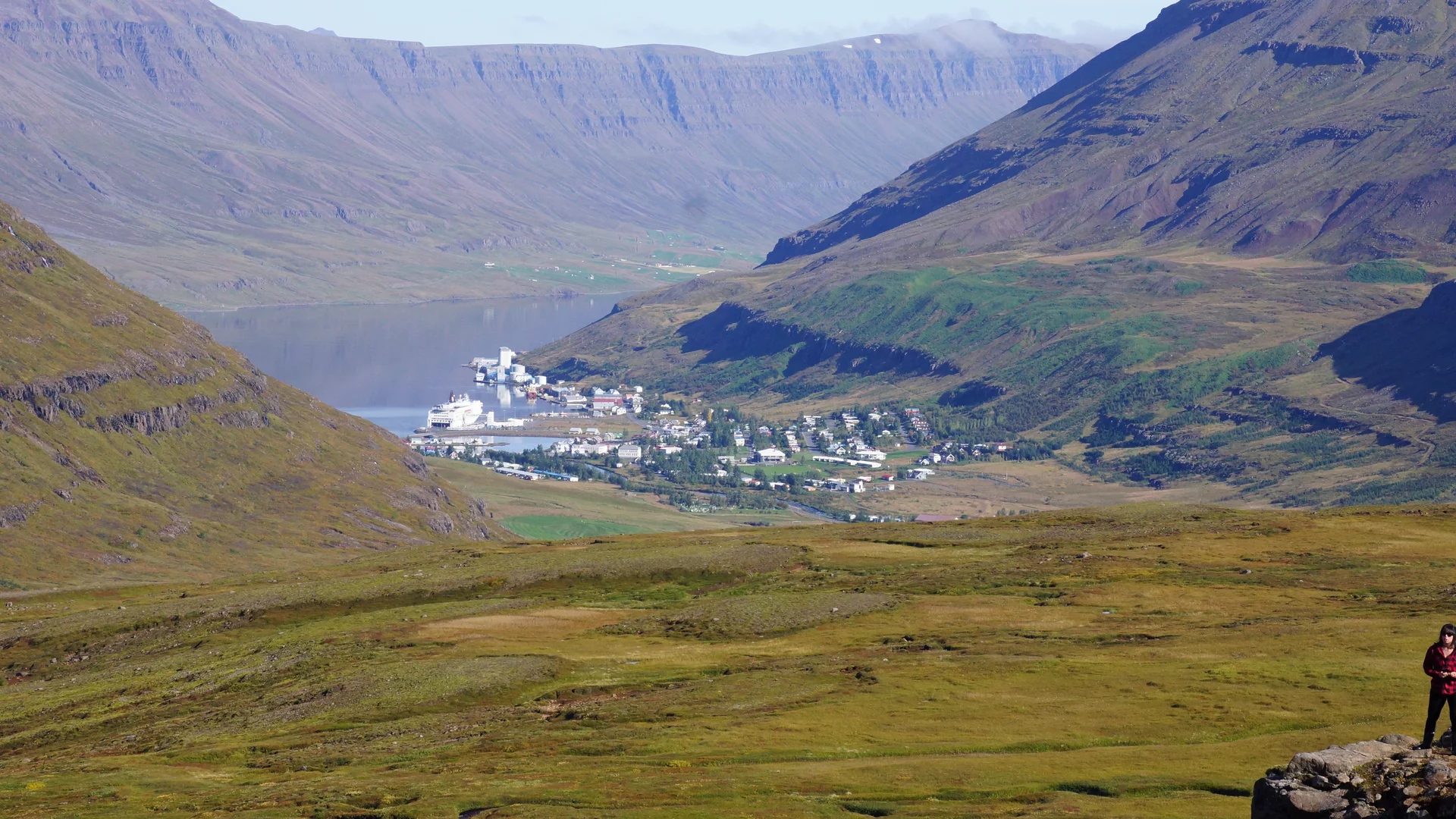 Da wir die südlich liegenden Fjorde morgen bei unserer Weiterfahrt nach Höfn sehen würden, entschlossen wir uns zu einem Trip hinauf in den Borgarfjord. Allein die Fahrt dorthin war landschaftlich schon sehr spektakulär, und Fotostop auf Fotostop war die Folge. Das Farbenspiel ist wirklich einmalig und es wurde im Fjord nachher noch intensiver. Nach einer kurzen Kaffeepause im einzigsten Café weit und breit, konnten wir im Hafen auch noch die Fischer, die just in dem Moment von See zurück kamen, beim Entladen ihres Fanges beobachten. Einen beachtliche "Portion" Kabeljau, fix und fertig ausgenommen, kam aus dem eisgekühlten Bauch der Fischerboote.