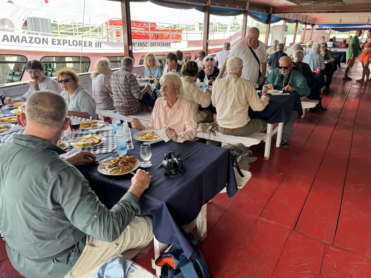 Mit der Sail-Away Party vor dem Abendessen auf dem Pooldeck haben wir uns bei einem traumhaften Sonnenuntergang von Manaus verabschiedet und ein erlebnisreicher Tag ging so langsam dem Ende entgegen.