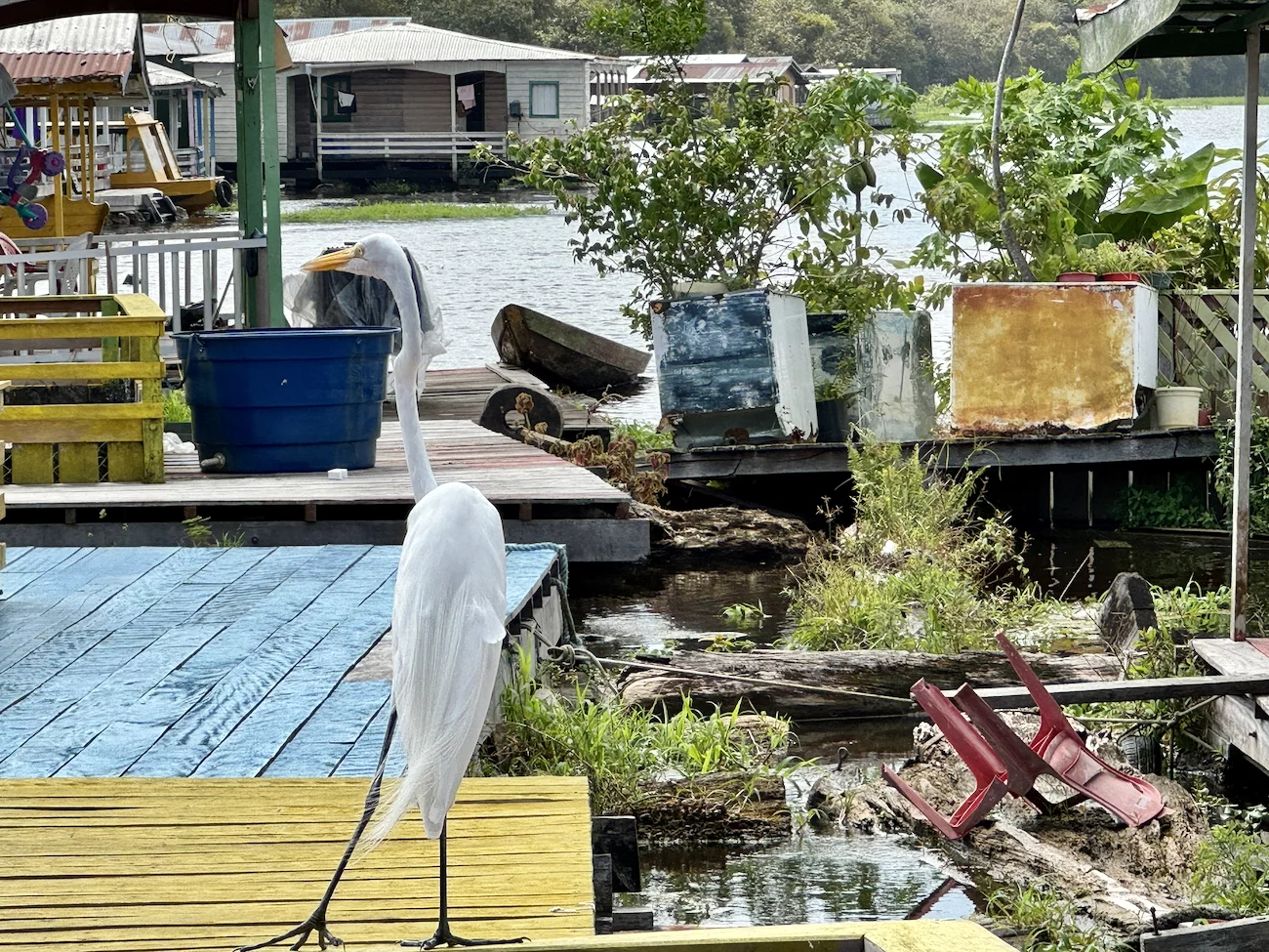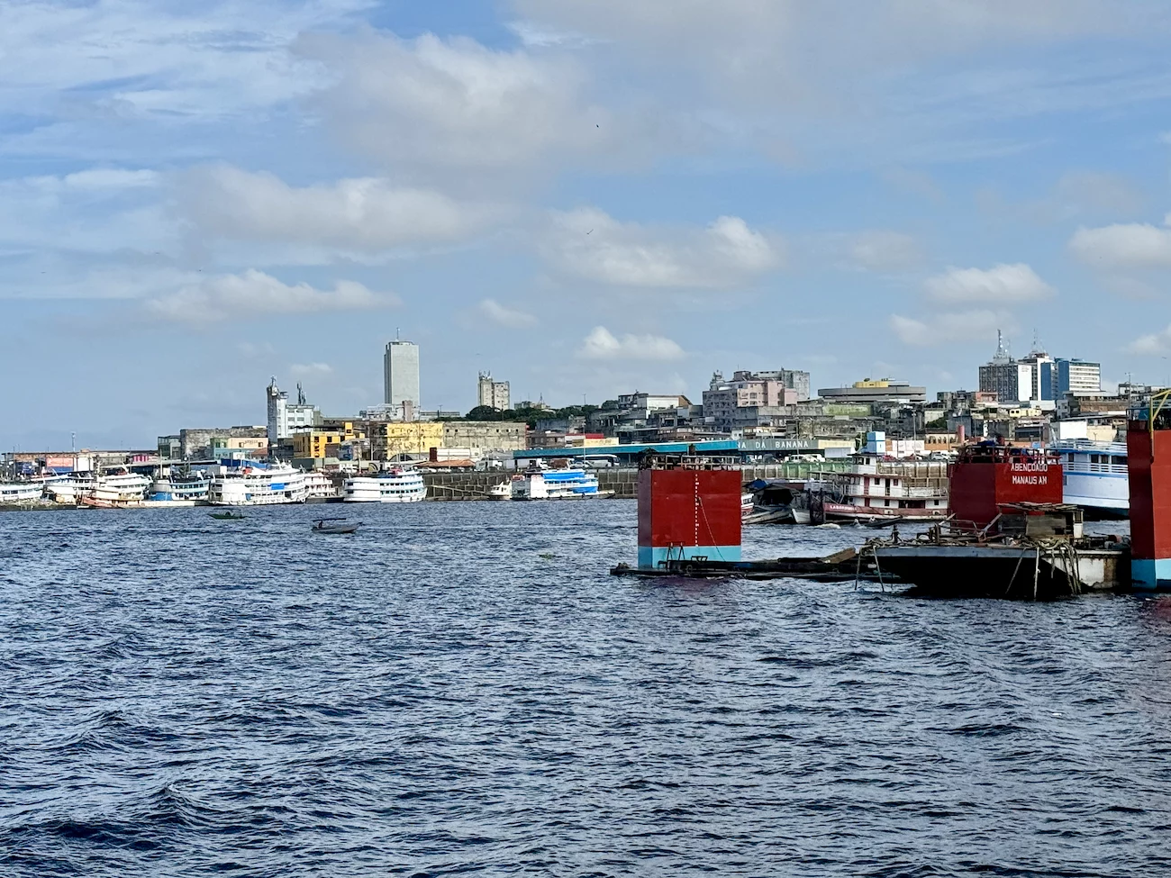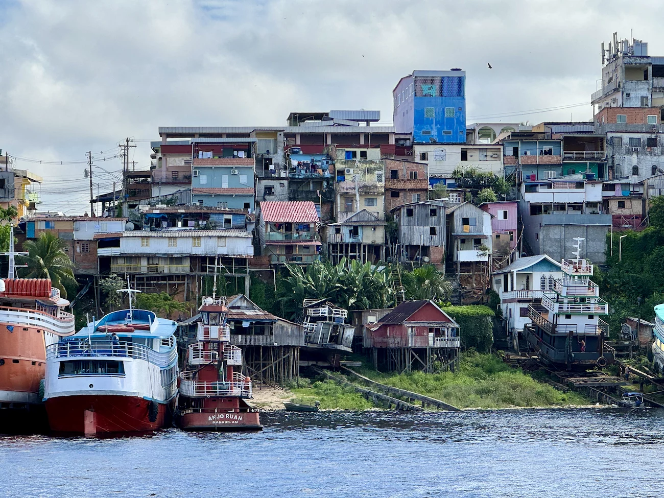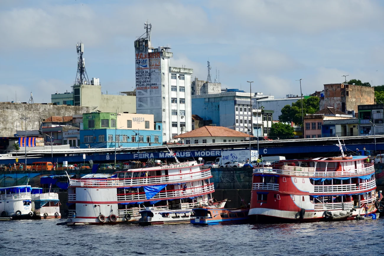 Am zweiten Tag in Manaus stand ein Ganztagesausflug unter dem Motto “Bootsfahrt im Janauari-Park" auf dem Programm. Dazu sind wir mit einem der typischen lokalen Boote zunächst den Rio Negro entlang der Skyline von Manaus bis zum Eingang des Parks gefahren, der zwischen den beiden Flüssen Rio Negro und Rio Solimões liegt.
