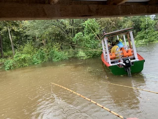 Im Janauari Park stand der Wechsel auf kleine Boote mit Außenbordmotor und Dach an, mit denen wir die kleinen engen Nebenflüsse und überfluteten Lagunen erkunden wollen. Die Dächer an den Booten waren heute ein wahrer Segen, denn sie boten uns zunächst Schutz vor der Sonne (es war in der Spitze bis 42° Grad warm), und am Nachmittag Schutz vor dem üblichen Platzregen, der hier in der Regenzeit wie eine warme Massage-Dusche herunterkommt. Die Einheimischen sind froh über jeden Tropfen Regen. Die Dürre ist zwar vorbei, aber der Wasserstand hat nach wie vor seinen normalen Pegel bei weitem noch nicht erreicht.