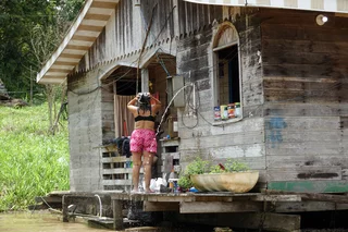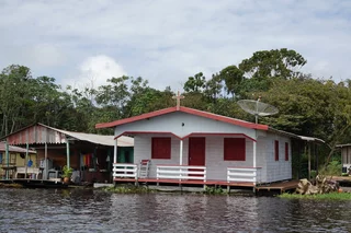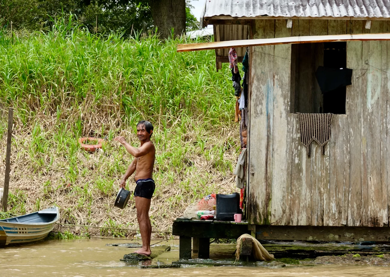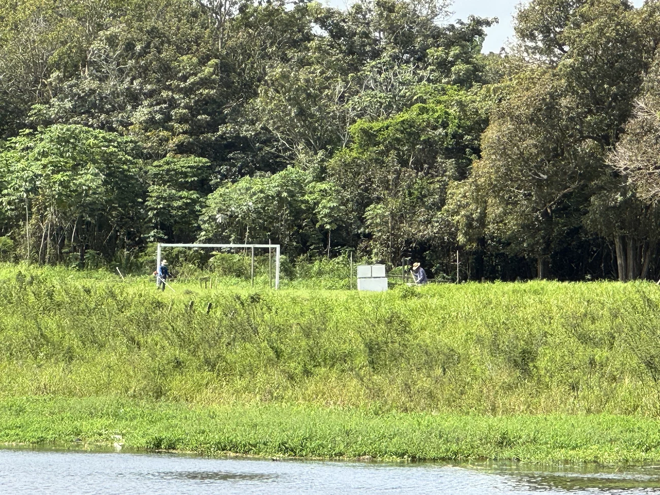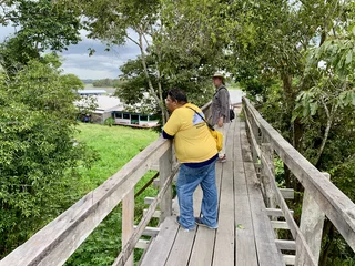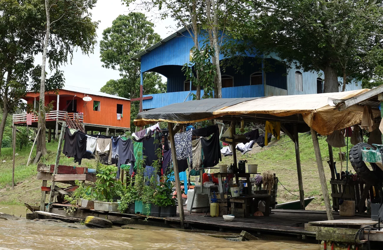 Es gibt ein Schule mit zugehörigem Schulboot, welches die Kinder aus der Umgebung abholt und nach Schulschluss wieder nach Hause bringt. Eine Kirche darf natürlich auch nicht fehlen, und was in Brasilien grundsätzlich nicht fehlen darf, ist natürlich ein Fußballplatz!! Das Leben spielt sich überwiegend draußen ab und richtet sich sehr stark nach Tag und Nacht. So dicht am Äquator heißt das jeweils 12 Stunden. Was für uns bei Einbruch der Dämmerung eine echte Plage ist, stört die Einheimischen nicht weiter, sie sind gegen Insektenstiche jedweder Art quasi immun.