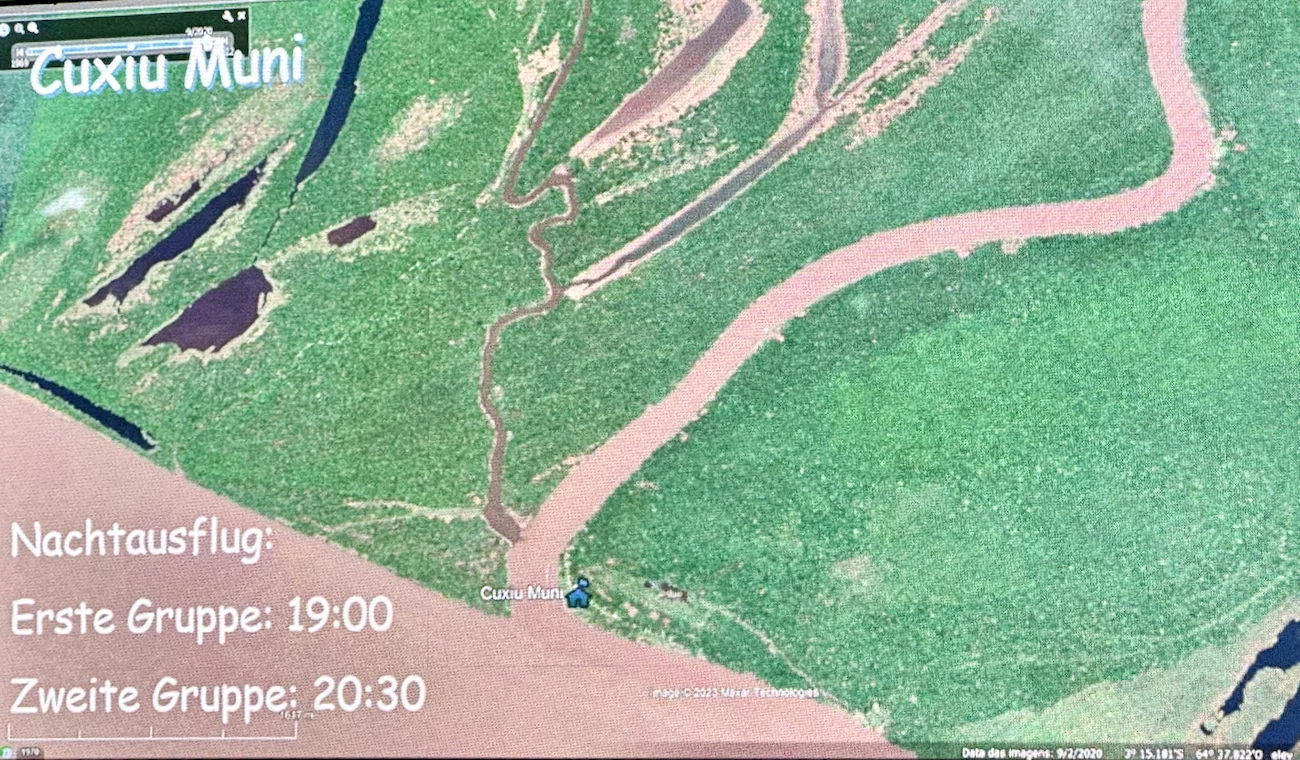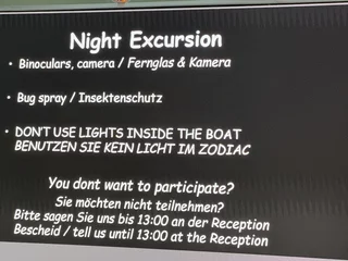 Der frühe Nachmittag war ein wenig der Entspannung gewidmet, bevor es für ein längeres Pre-Cap für den morgigen Tag in Cuxiu Muni (sprich Kutschiu Muniii) ins Hanseatrium auf Deck 4 ging. Länger, weil für morgen 2 Zodiacfahrten am Tag und eine nach Einbruch der Dunkelheit von jeweils knapp 2h geplant sind. Das nennen wir mal ein sportliches Programm. Davon gibt’s dann morgen mehr zu lesen.