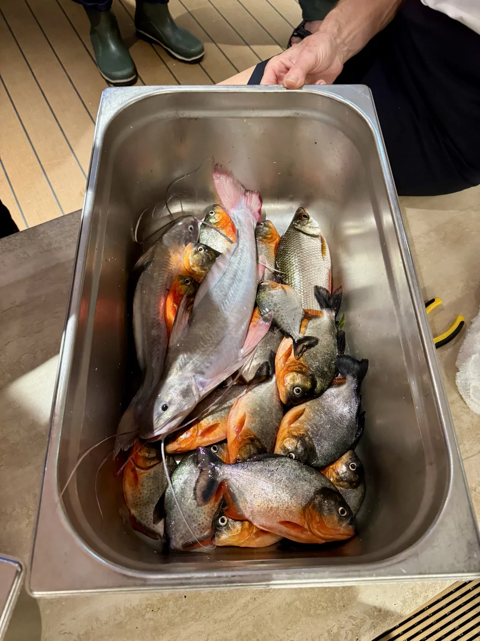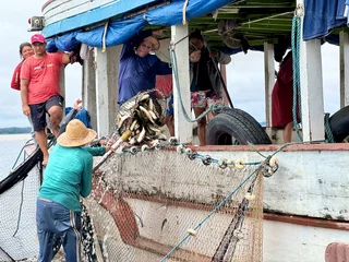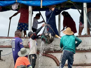 Auf dem Weg zurück zum Schiff konnten wir noch einige Fischer beobachten, die ihren Fang von den kleinen Holzbooten(!!) in ein größeres Fischerboot umluden.