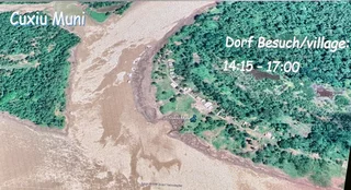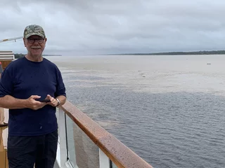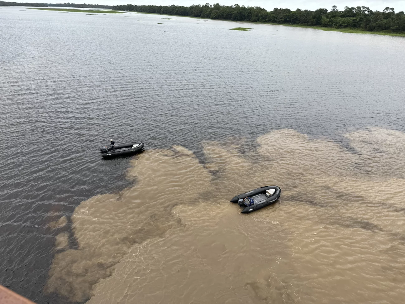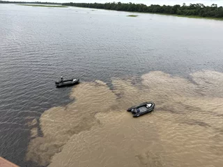 Unser heutiges Ziel Badajós liegt an der Einmündung eines kleinen Schwarzwasserflusses, dem Rio Badajós. Dieses Wasser ist im Gegensatz zum sedimentreichen Amazonas frei von Schlamm und ist fast klar. Von Deck aus war die Grenze zwischen “Milchkaffee” und “Schwarzem Kaffee” deutlich zu erkennen.