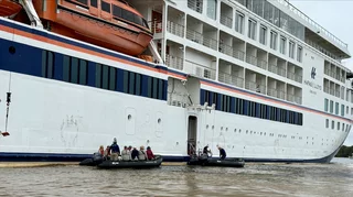 Der Käpt’n nutzte die Gelegenheit, um ein Stück in die Flussmündung zu fahren und mit der Osmose-Anlage des Schiffes Frischwasser zu produzieren und so die Wassertanks wieder komplett aufzufüllen.