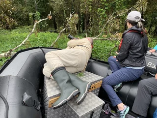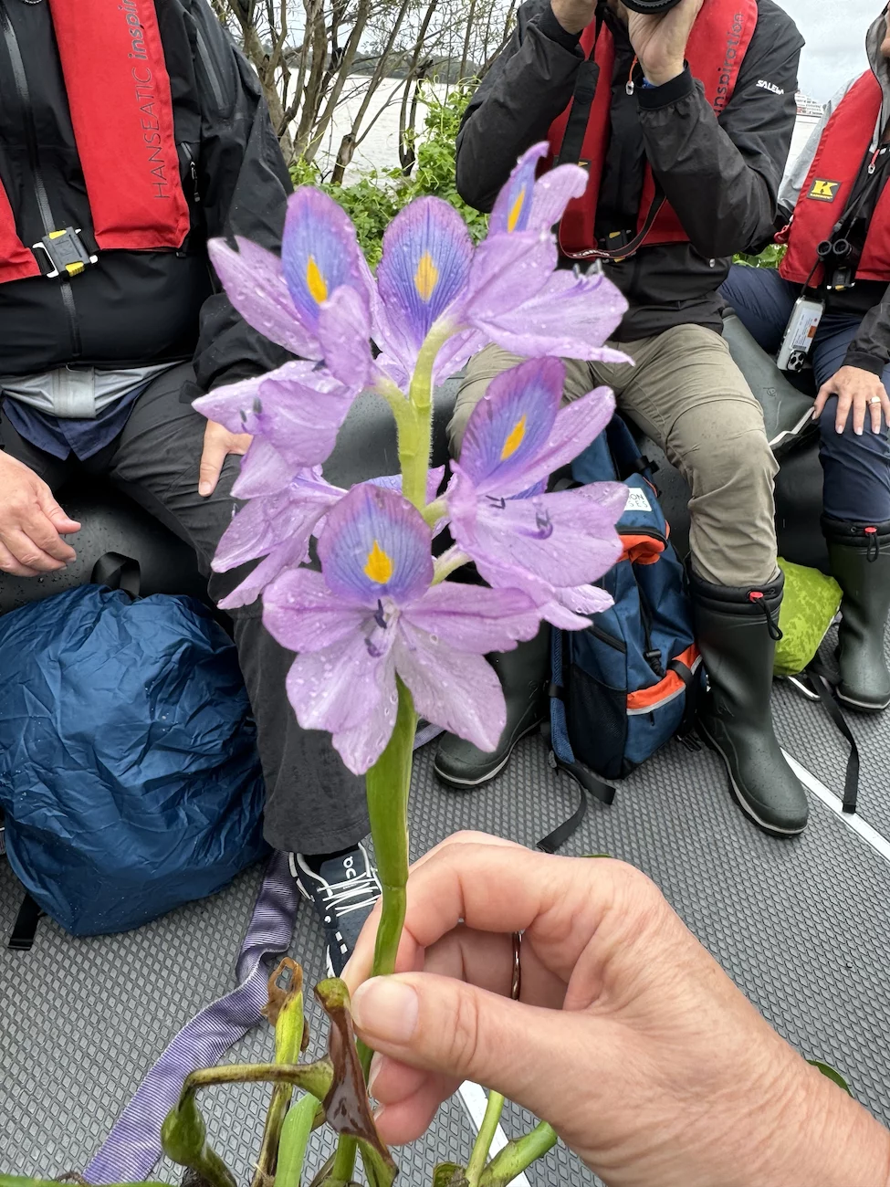 Es ist zwar Palmsonntag, aber das Programm kennt keine Gnade. Bereits um 8:30 Uhr begann die erste Zodiacgruppe, schön geordnet nach Farbcodierungen, mit dem Ausbooten. Wir hatten heute Glück, denn wir waren das vorletzte Boot der zweiten Gruppe und hatten somit Zeit bis 11:30 Uhr für den Umstieg auf das Zodiac. Die Tour war für eine Dauer von ca. 1,5 Stunden angesetzt, die wir auch bis zur letzten Minute ausgereizt haben. Die Gegend hier ist laut unseren brasilianischen Expeditionsexperten ein gutes Gebiet für Vogelbeobachtungen. Damit hatten sie recht, denn wir haben einige verschiedene Vogelarten gesehen. Dummerweise haben Vögel die Angewohnheit immer dann weg zu fliegen, wenn man sie fotografieren will. Besonders dann, wenn sich ein Zodiac mit brummendem Motor nähert.