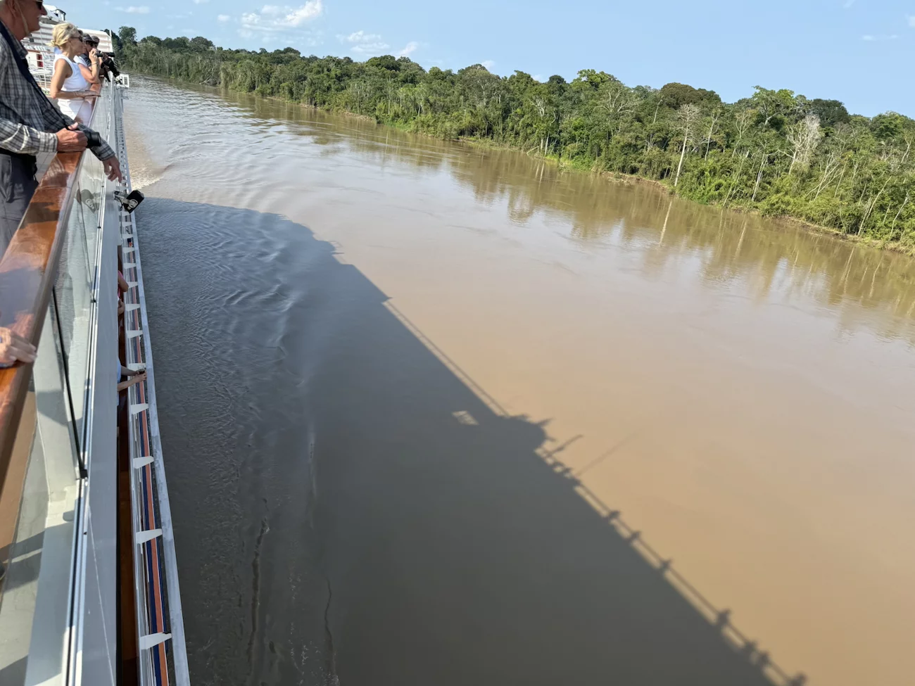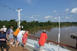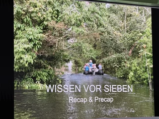 Früher Start der Zodiac-Ausfahrten, in der Regel direkt nach Sonnenaufgang. Bis auf wenige Ausnahmen findet am Nachmittag eine zweite Ausfahrt statt. In Cuxiu Muni kam dann sogar noch eine Nachtausfahrt dazu. Eine halbe Stunde vor dem Abendessen findet der sogenannte Recap-Precap statt. Das ist quasi ein “Pflichtvortrag”. Beim Recap wird der vergangene Tag nochmal kurz rekapituliert. Beim Precap erfahren wir dann, was am nächsten Tag geplant ist hinsichtlich, Art/Start/Dauer der Aktivitäten, was es abgesehen von Sonnen- und Insektenschutz noch zu beachten gibt.