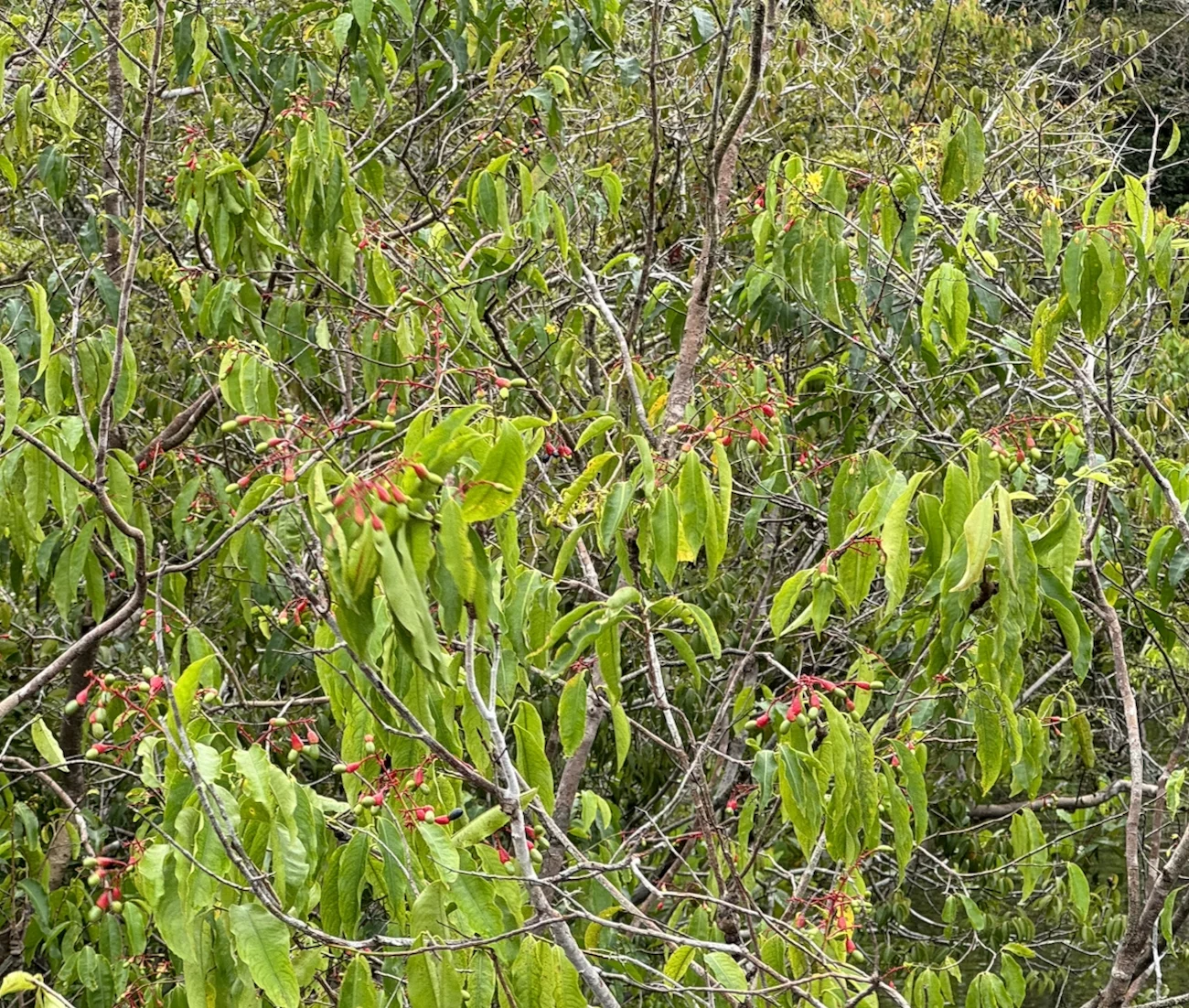 Unsere zweite Ausfahrt führte uns wieder in den Igapó und gleich bei der Einfahrt in den engen Kanal entdecken wir eine botanische Kuriosität wie es heißt. Ein Micky-Mouse-Bush. Die Fruchtstände des Strauches erinnern tatsächlich ein wenig an die Ohren der berühmten Comic-Figur.