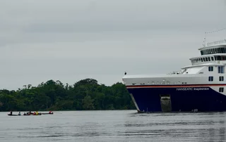 Nachdem alle Gäste schön “durchgeweicht" wieder an Bord waren und einen perfekten Eindruck vom Regenwald bekommen hatten, wurde der Anker gehoben und die Inspiration verholte auf eine andere Ankerposition einige Seemeilen flußaufwärts. Von dort startet die zweite Ausfahrt am Nachmittag.