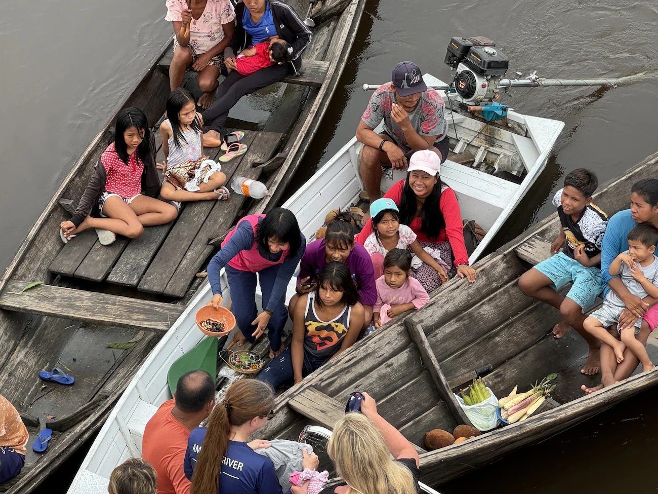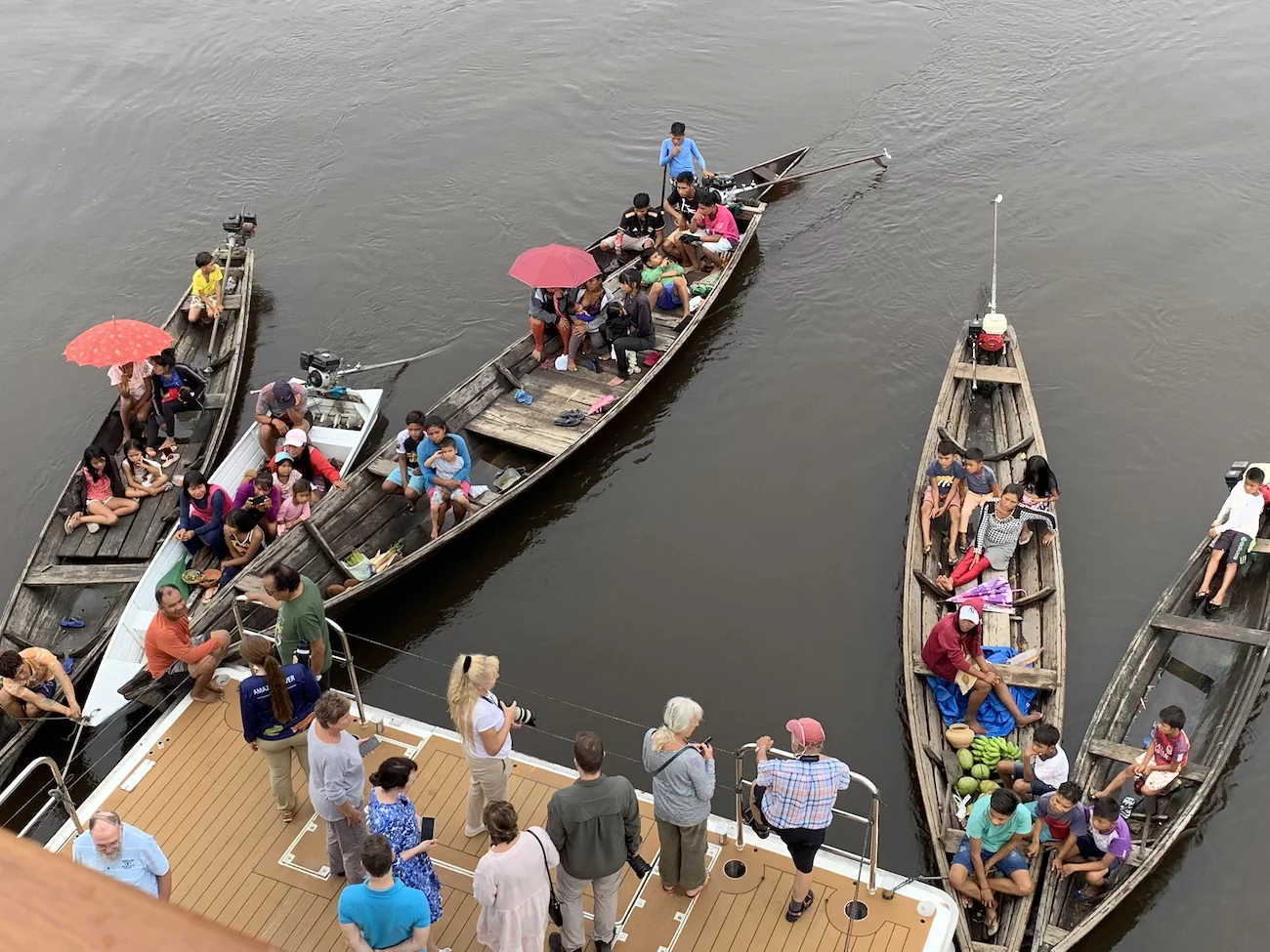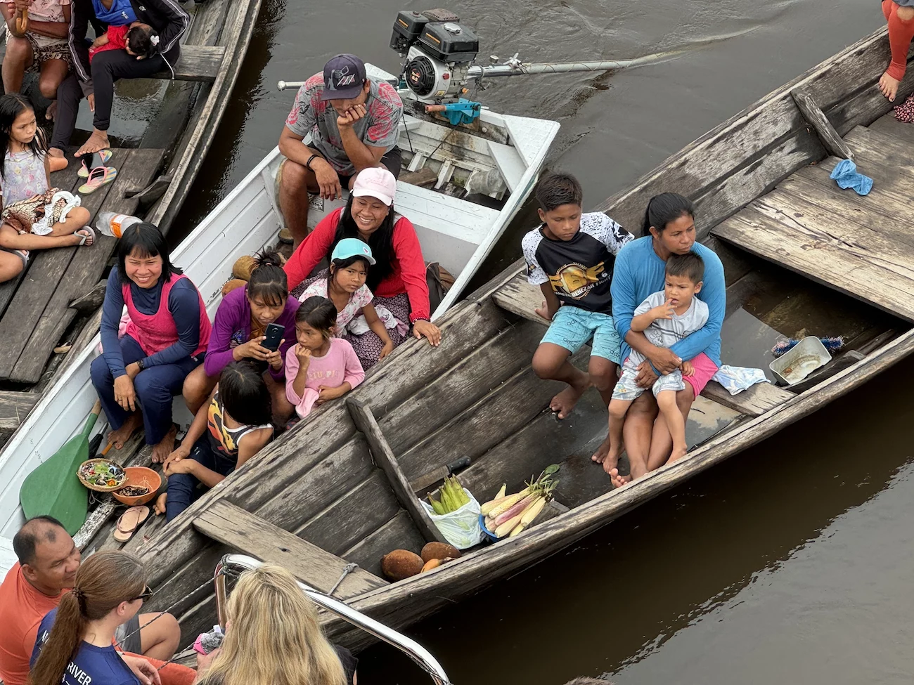 Bei der Rückkehr zum Schiff waren immer noch einige neugierige Cablocos um das Schiff herum mit ihren Kanus unterwegs. Die “Handelstätigkeiten” waren aber inzwischen zu Ende.