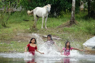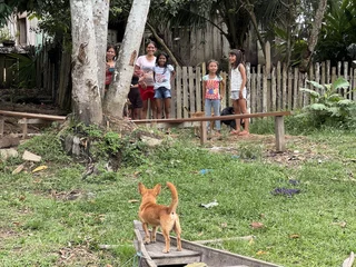 Auf der Weiterfahrt weitete sich der schmale Kanal zu einem kleinen See aus, an dessen Ufer sich eine Cabloco Familie angesiedelt hatte. Für sie waren wir mit unserem Zodiac wohl eine kleine Sensation, denn einige der Kinder kamen direkt auf uns zu und sprangen sogar in den See. Neben einer Hütte blühte in einem Busch eine Cattleya, die Nationalblume Brasiliens, leider etwas weit weg für ein detailliertes Foto. Deshalb habe mir von einem unserer Experten eines “ausgeliehen”.