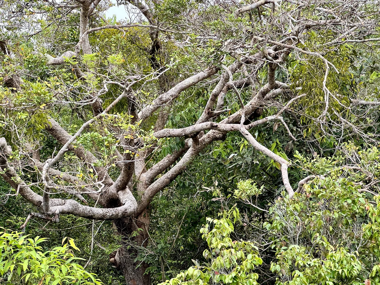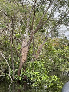 Wenig später sahen wir an einem Baum gleich zwei große Nester von Feuerameisen. Wir haben in Respektsabstand gehalten, den der Kontakt mit den Biestern ist zwar nicht lebensgefährlich, aber es brennt und juckt höllisch, wenn man mit ihnen in Berührung kommt.