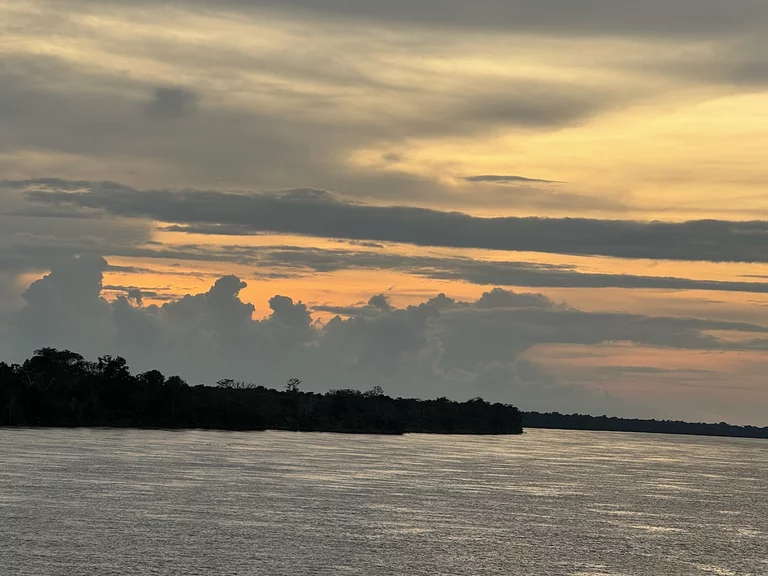 Gestern Abend schon sind wir den Hauptstrom (der in Kolumbien und Peru auch wieder Amazonas heißt) weiter hochgefahren. Er bildet hier für eine Weile die Grenze zwischen den beiden Staaten. Ulkigerweise fuhren wir teilweise in beiden Staaten gleichzeitig (Steuerbord in Kolumbien, Backbord in Peru). Auf dem kolumbianischen Nordufer liegen unsere beiden nächsten Ziele.