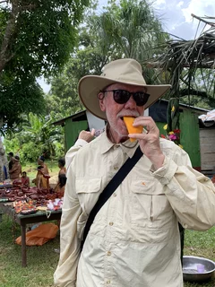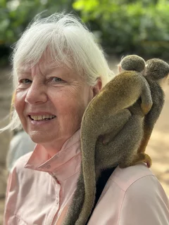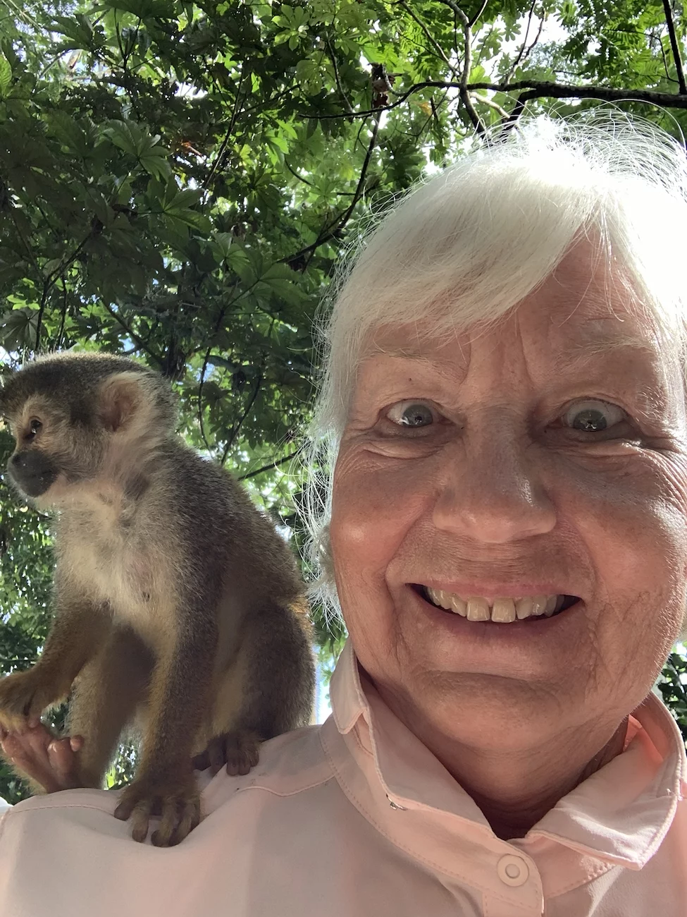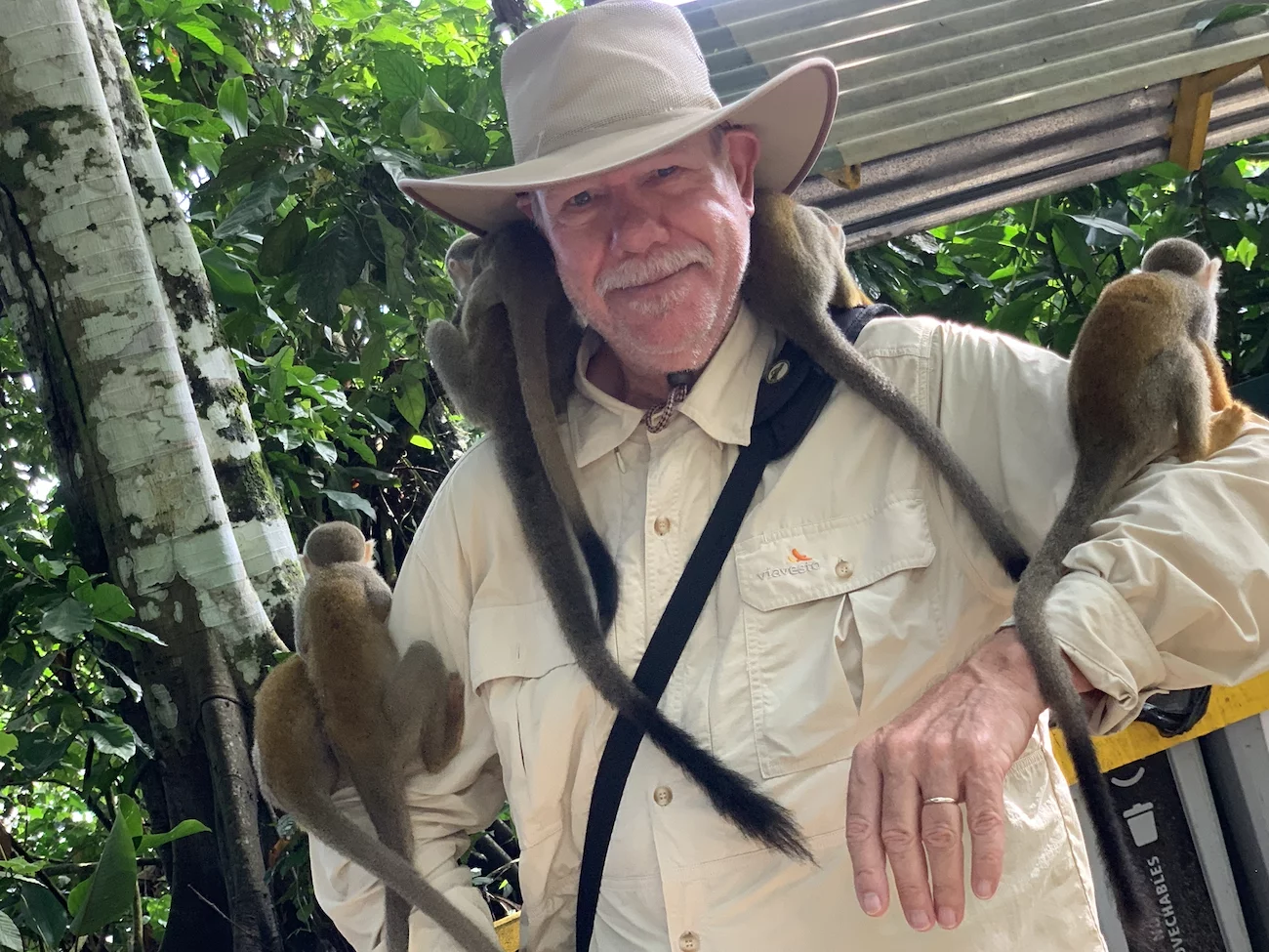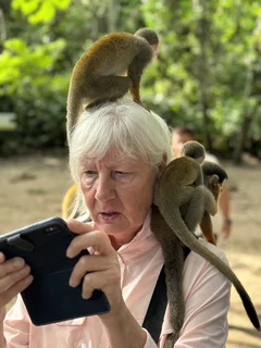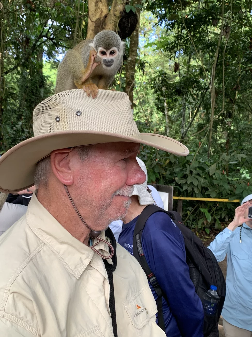 Sie haben die Scheu vor Menschen weitgehend verloren und werden ein wenig gefüttert. Nach einer Einweisung gehen wir in Kleingruppen mit Rangern in den Wald, wo die jeweilige Horde angelockt wird und zur Belohnung ein paar wenige Bananen erhält. Sie kommen sofort herbei, hüpfen und turnen munter auf uns herum, als ob wir einfach komische Bäume wären. Aber sie gucken auch in Kameraobjektive und untersuchen alles, was spiegelt oder glänzt. Dabei sind sie sehr leicht und weich und tun uns auch nicht weh, da sie keine Krallen, sondern Fingernägel besitzen wie wir. Ein wirklich einmaliges Erlebnis, diese putzigen Tier aus nächster Nähe zu beobachten, zu erleben und zu fühlen!