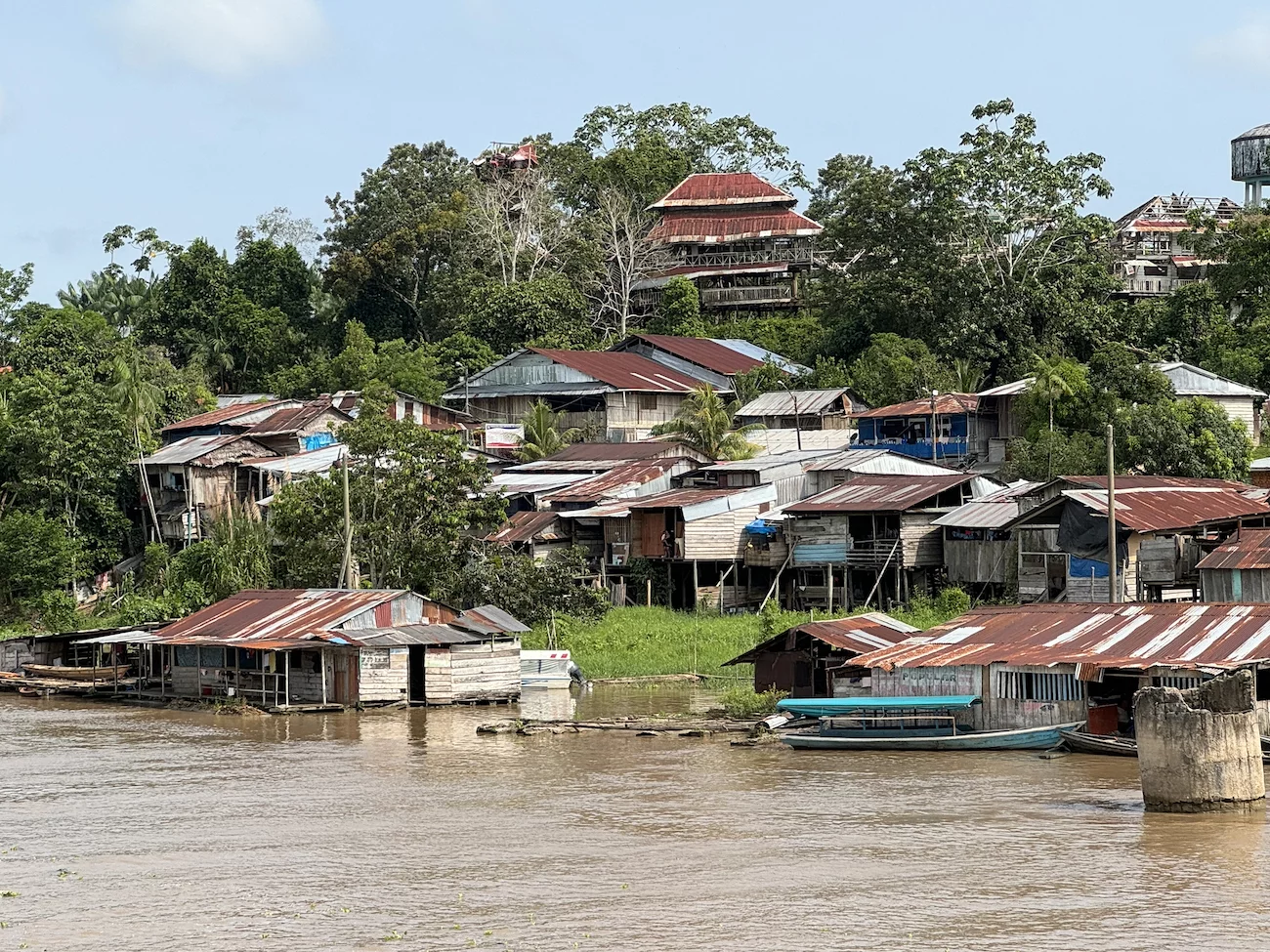 Heute morgen gingen wir vor Pevas, Perú, der ältesten Stadt in ganz Amazonien vor Anker.