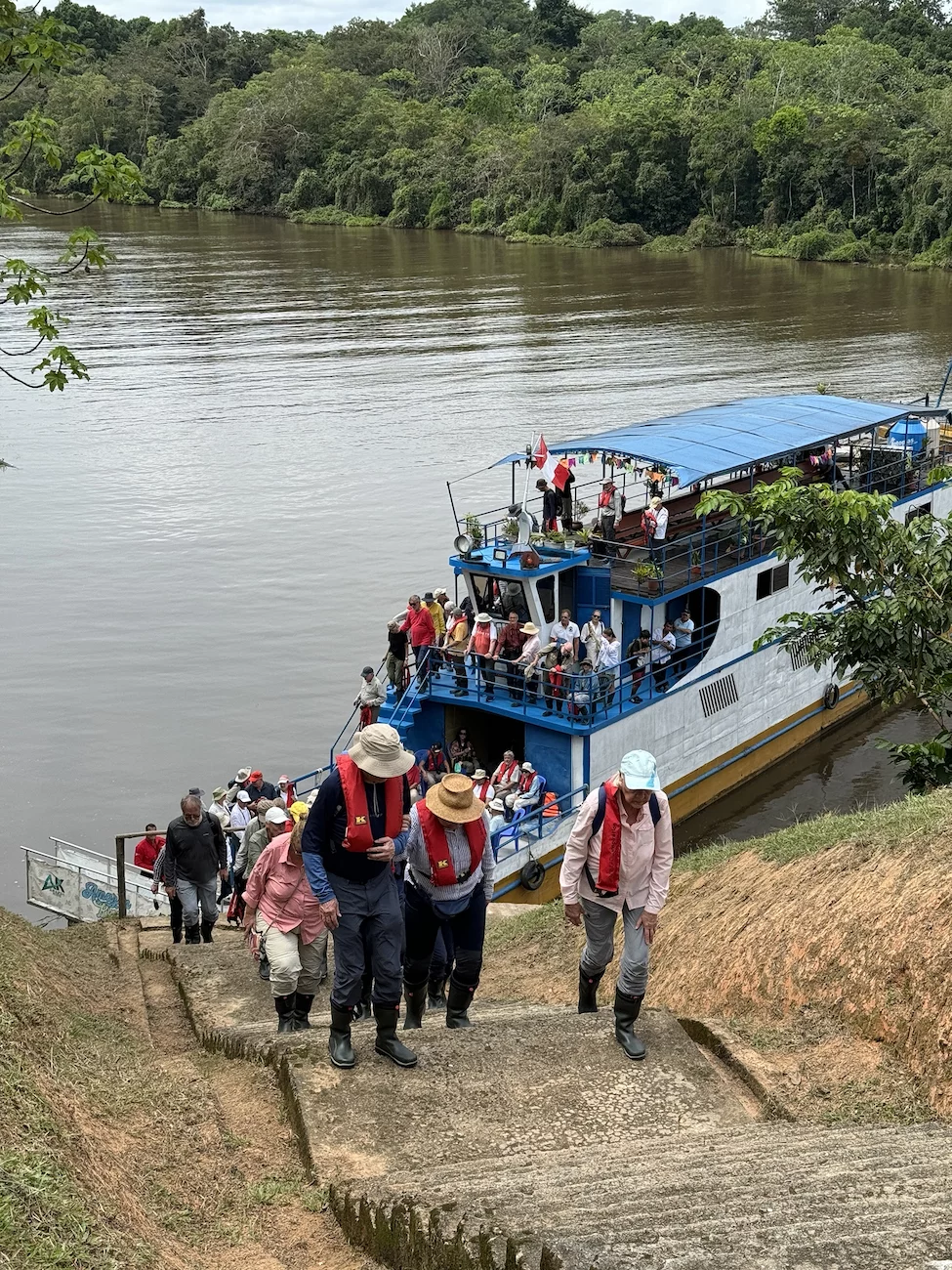 Die andere Hälfte, zu der wir gehörten, fuhr mit einem stilechten Amazonas-Dampfer aus Metall, der „Amazon King“ in die Dorfhälfte der Bora und erlebt dort ebenfalls ein Programm aus Dorfführung und Tanz in der Maloka.