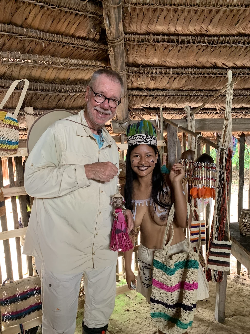 Zum Abschluß gab es dann noch die Chance, handgefertigte Souvenirs zu kaufen. Auch das hilft dem Stamm und so haben uns entschlossen, unserem Püppchen aus Namibia eine "Schwester" aus Peru mitzubringen.