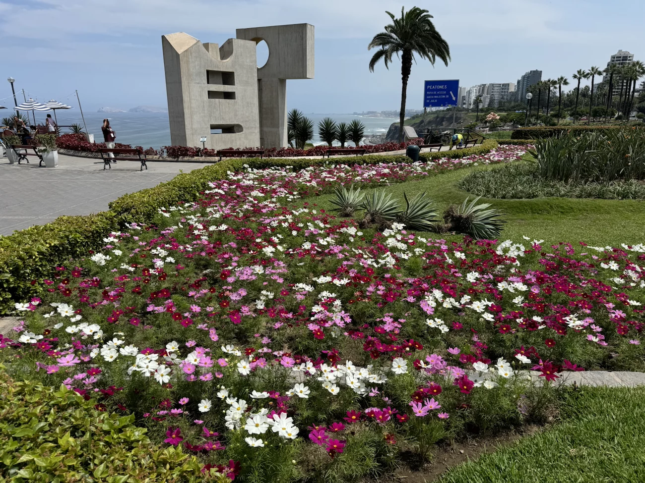 Miraflores ist so ganz anders als der Rest von Lima. Hier herrscht fast schon kanarisches Flair. Der Malecón liegt ca 100m über den gewaltigen Klippen und bietet fantastische Ausblicke über den pazifischen Ozean. Entlang des Weges gibt es thematisierte Aussichtspunkte, die sehr schön hergerichtet sind. Davon ist La Comar der westlichste und für uns ein ganz besonderer Punkt. Denn er markiert die Stelle, an der wir den südamerikanischen Subkontinent in seiner kompletten Breite durchquert haben. Vom Atlantik bis zum Pazifik, oder wie unsere amerikanischen Freunde sagen würden : “From Sea to shining Sea". Den Moment und diese Tatsache haben wir erst einmal sacken lassen müssen.