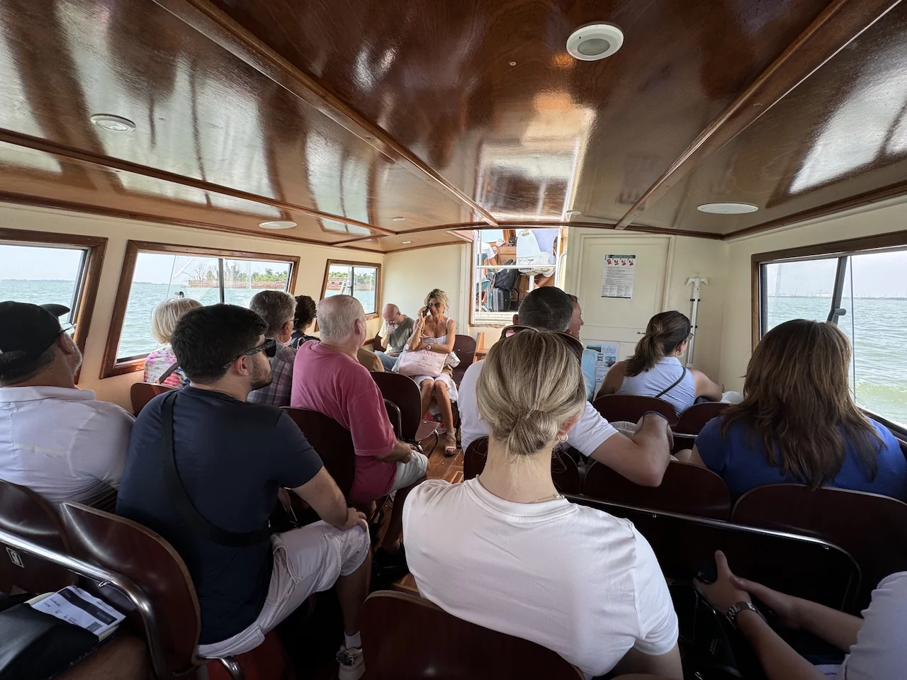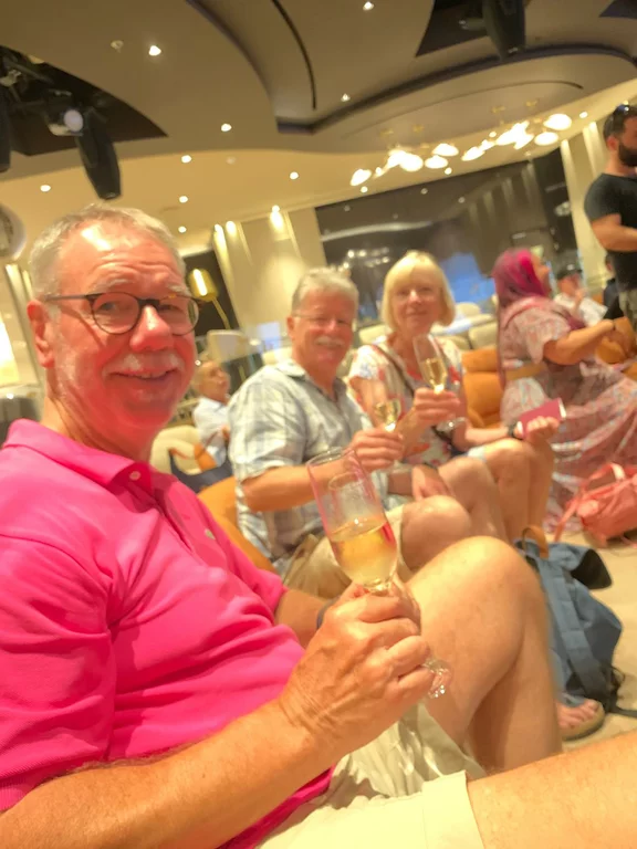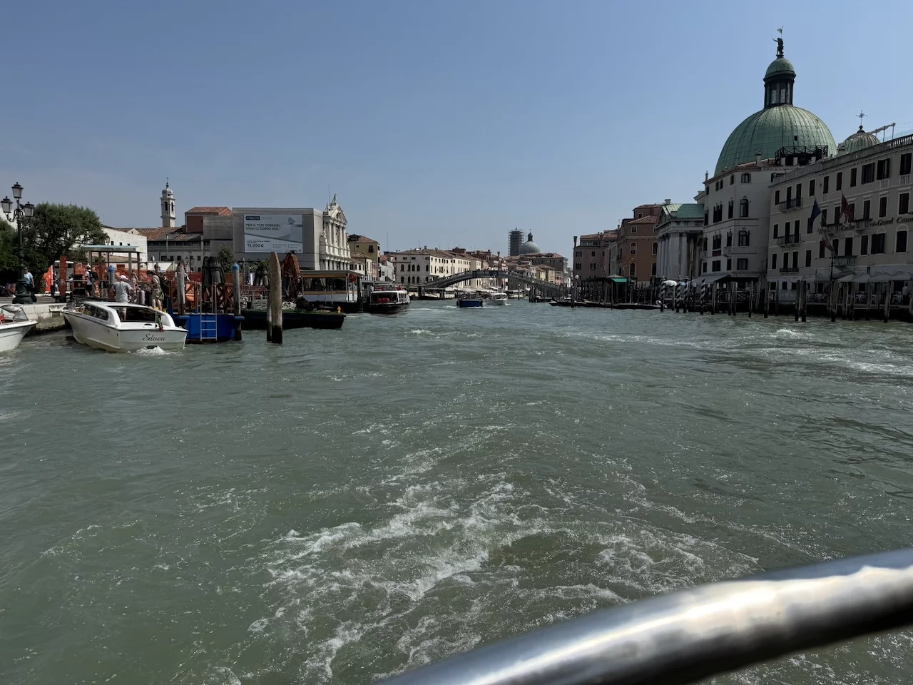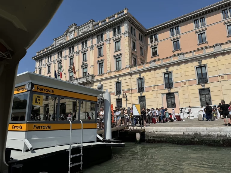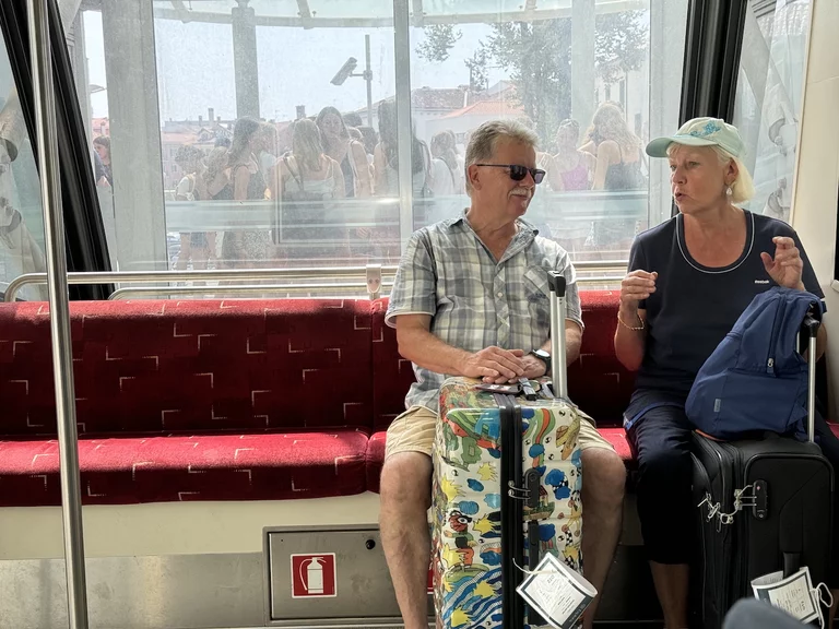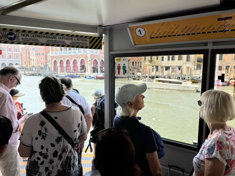 Da diese Häfen aber kein Terminal für Kreuzfahrtschiffe haben, muss das Check-in und die Gepäckabgabe sowie der Security-Check nach wie vor am Cruise Terminal auf der Lagune stattfinden. Das hieß für uns, mit dem Wassertaxi vom Hotel zum Piazzale Roma zu fahren, dort umsteigen in eine kleine Hochbahn, die uns dann schlußendlich zum Cruise Terminal bringt. Normalerweise kein Problem, doch in der Hochsaison, mit größeren Koffern "bewaffnet" und bei 35° im Schatten, ist das Einsteigen in das völlig überfüllte Wassertaxi schon eine kleine Herausforderung, um es vorsichtig auszudrücken. Das Gute ist, man kann seine nach fast 50 Jahren nur noch rudimentär vorhandenen italienisch Kenntnisse wieder etwas aufbessern.