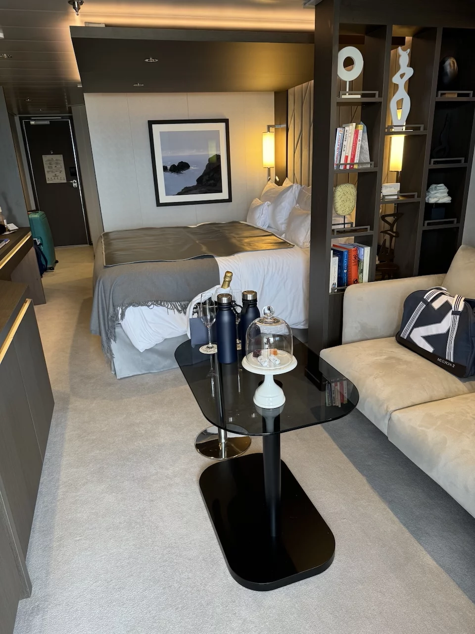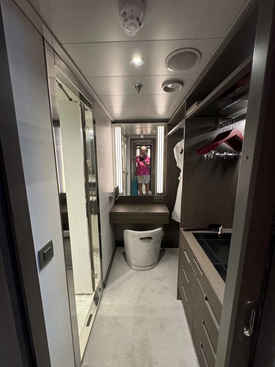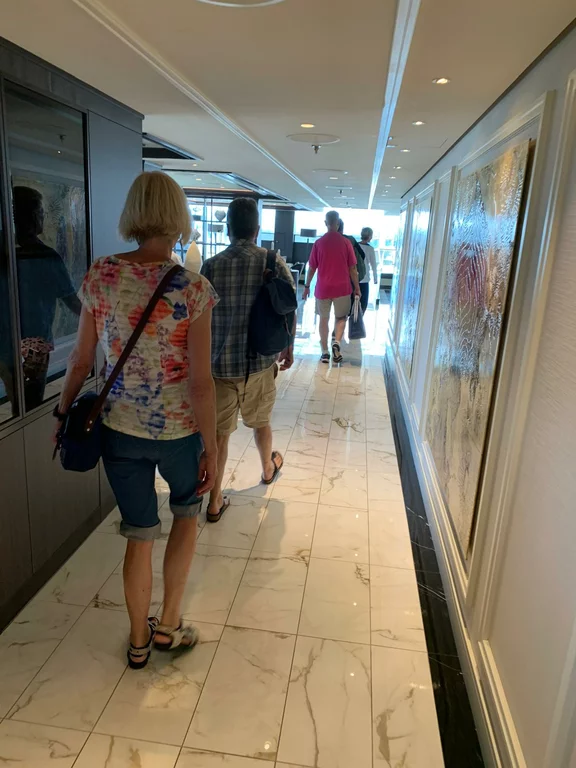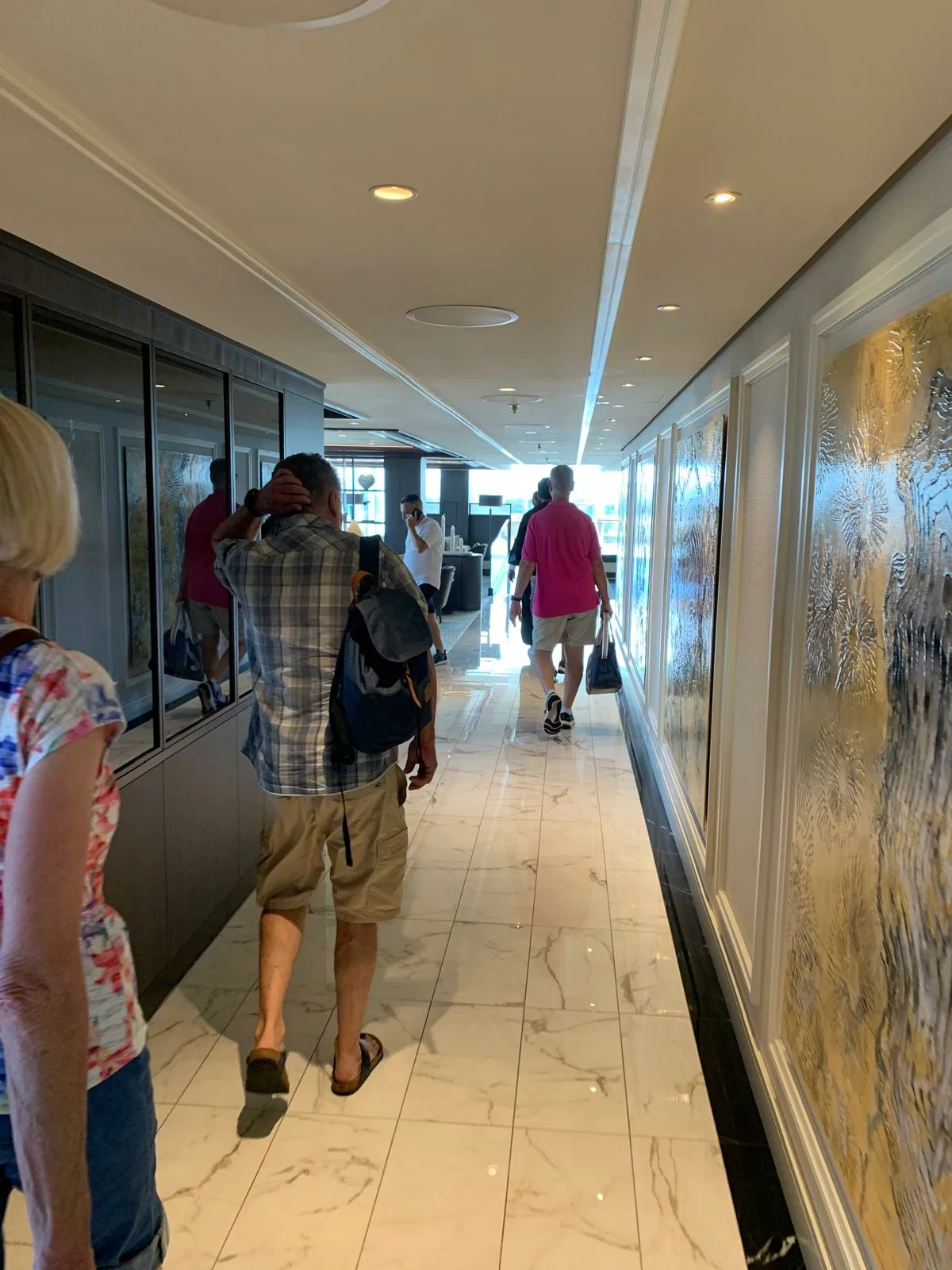 Auf dem Weg zu unserer Suite (hier gibt es keine normalen Kabinen) zeigte sich schon, dass wir auf einem ganz besonderen Schiff gelandet sind. Das Gefühl verstärkte sich deutlich, als wir von Lester, unserem Kabinensteward - der hier Suiten-Host heißt - empfangen und in unsere "Kemenate" für die nächsten 7 Tage geführt wurden. Ein erster wirklicher WOW-Moment. Dazu später noch etwas mehr.