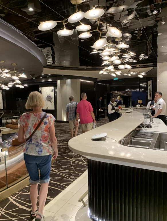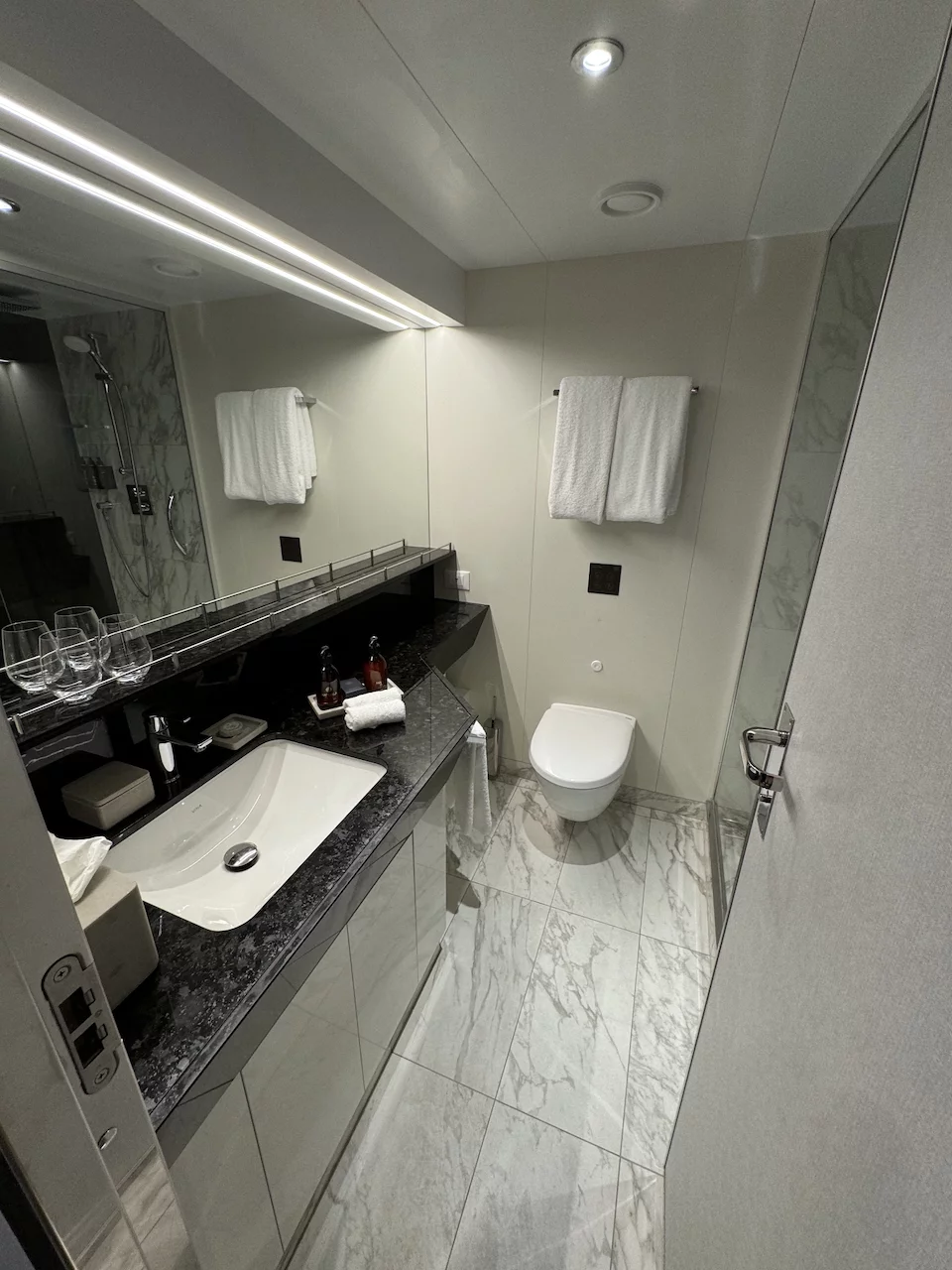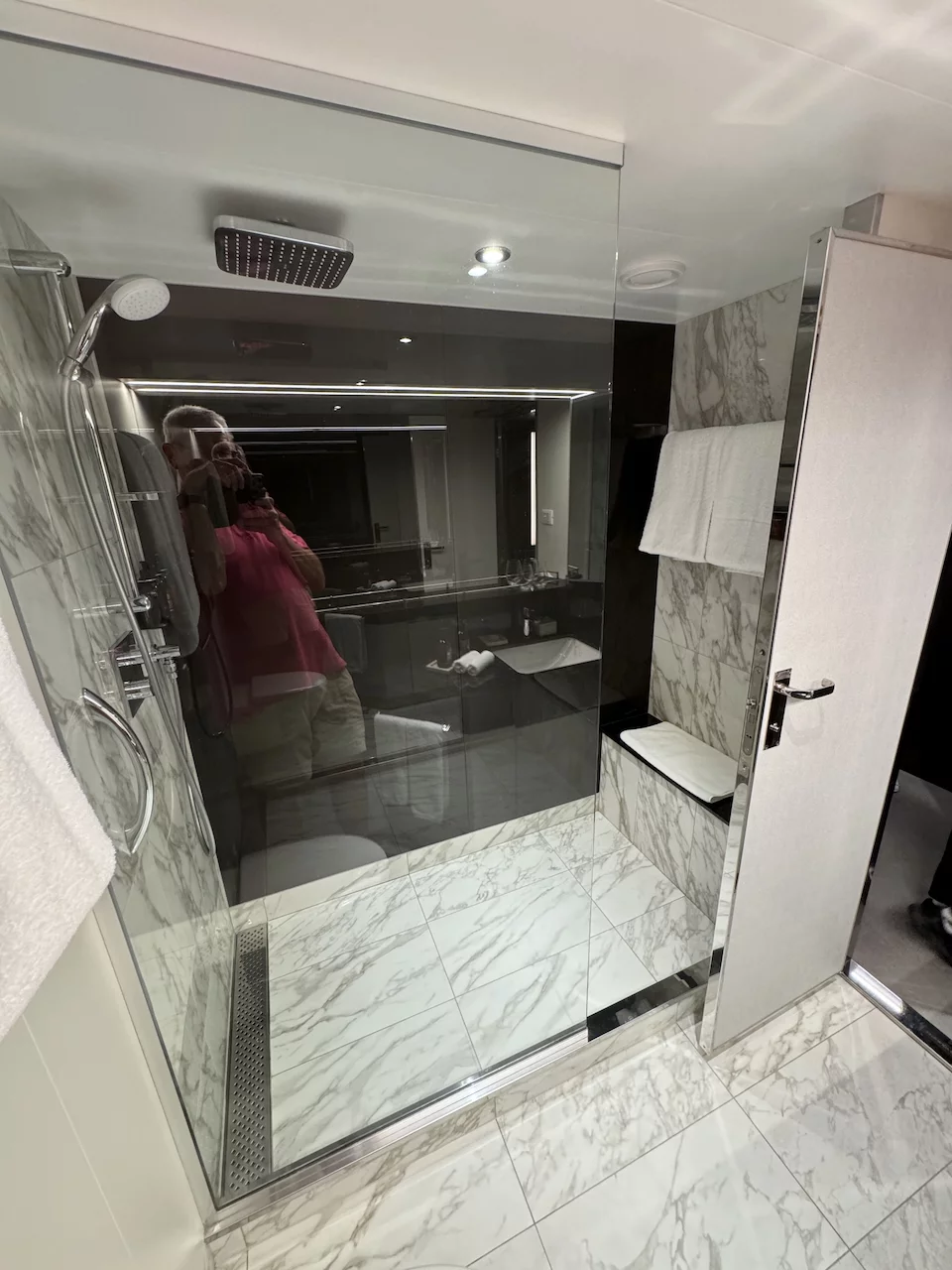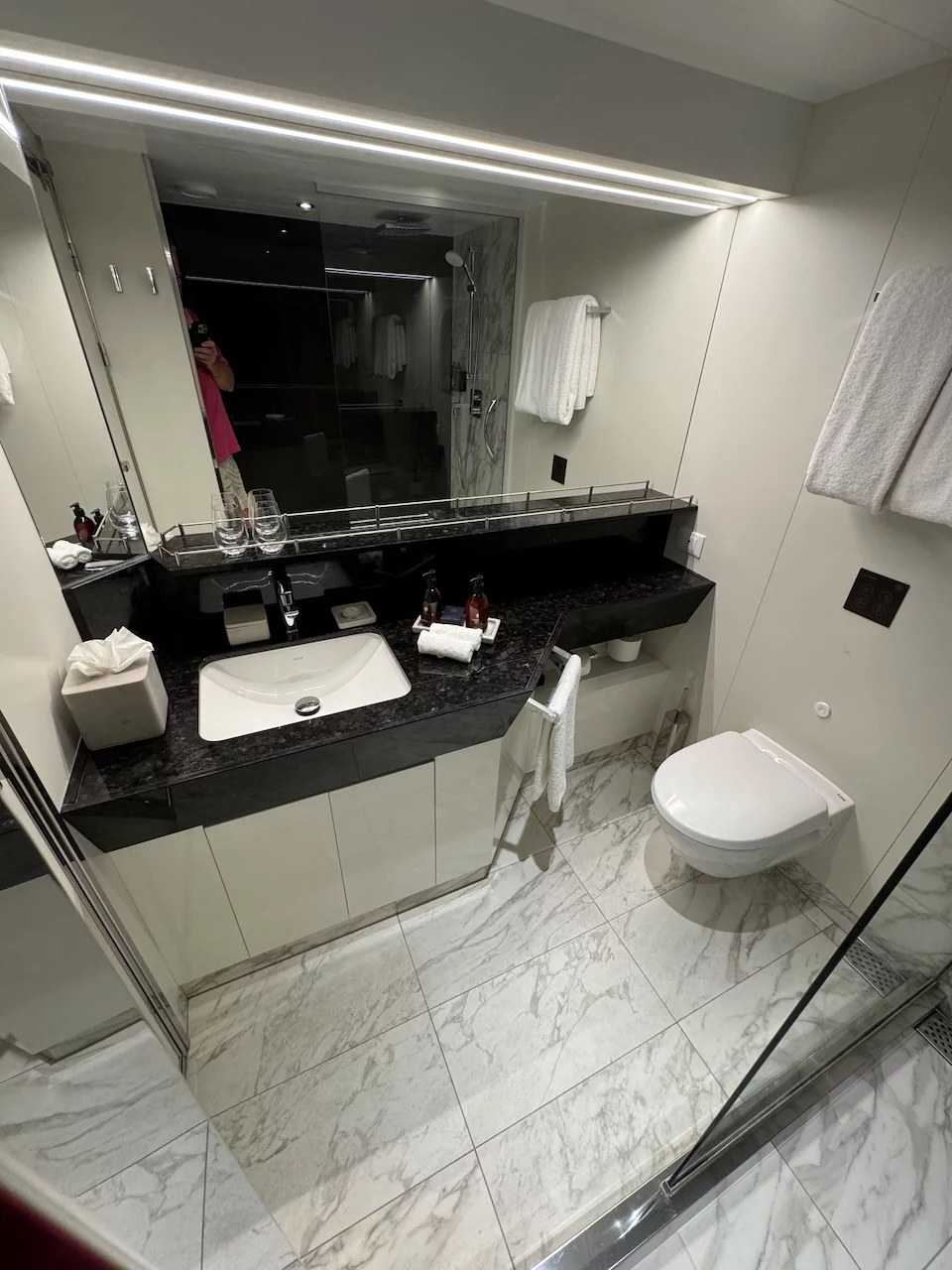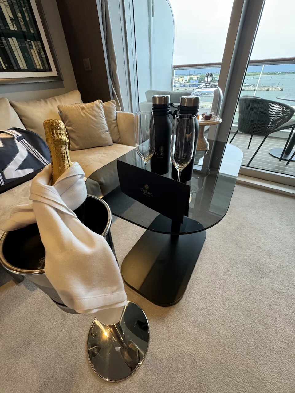 Auf dem Weg zu unserer Suite (hier gibt es keine normalen Kabinen) zeigte sich schon, dass wir auf einem ganz besonderen Schiff gelandet sind. Das Gefühl verstärkte sich deutlich, als wir von Lester, unserem Kabinensteward - der hier Suiten-Host heißt - empfangen und in unsere "Kemenate" für die nächsten 7 Tage geführt wurden. Ein erster wirklicher WOW-Moment. Dazu später noch etwas mehr.