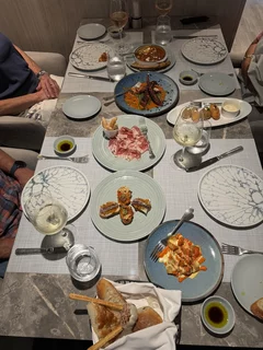 Wir haben uns für den ersten Abend das Restaurant "MED" ausgesucht, denn uns stand der Sinn nach Mediterraner Küche. Und wir haben es wahrlich nicht bereut. Sowohl das Essen als auch der Service des top-geschulten Personals waren absolut fantastisch. Leider haben wir nicht daran gedacht, die Speisekarte zu fotografieren. Somit müsst Ihr Euch für heute mit den Bildern begnügen.