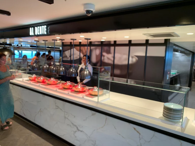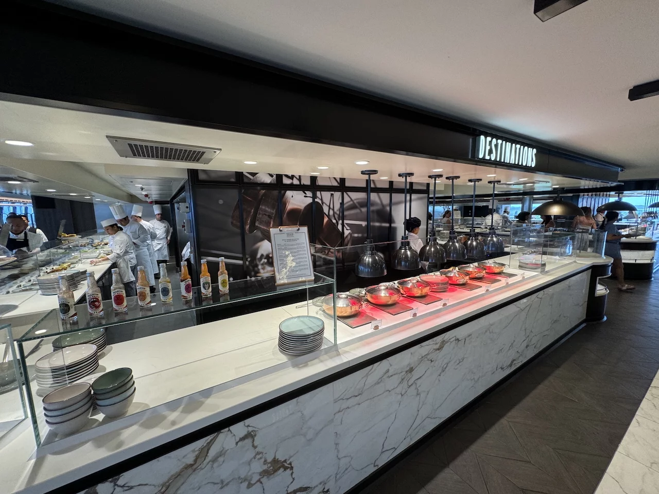 Inzwischen war es schon fast 14:00 Uhr. So langsam meldete sich der Hunger. Also ging es zunächst hoch auf Deck 11 in das Emporium Marketplace Restaurant. Das ist das Buffet-Restaurant auf diesem Schiff. Und das war der 2. WOW-Moment.