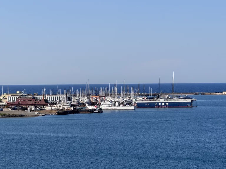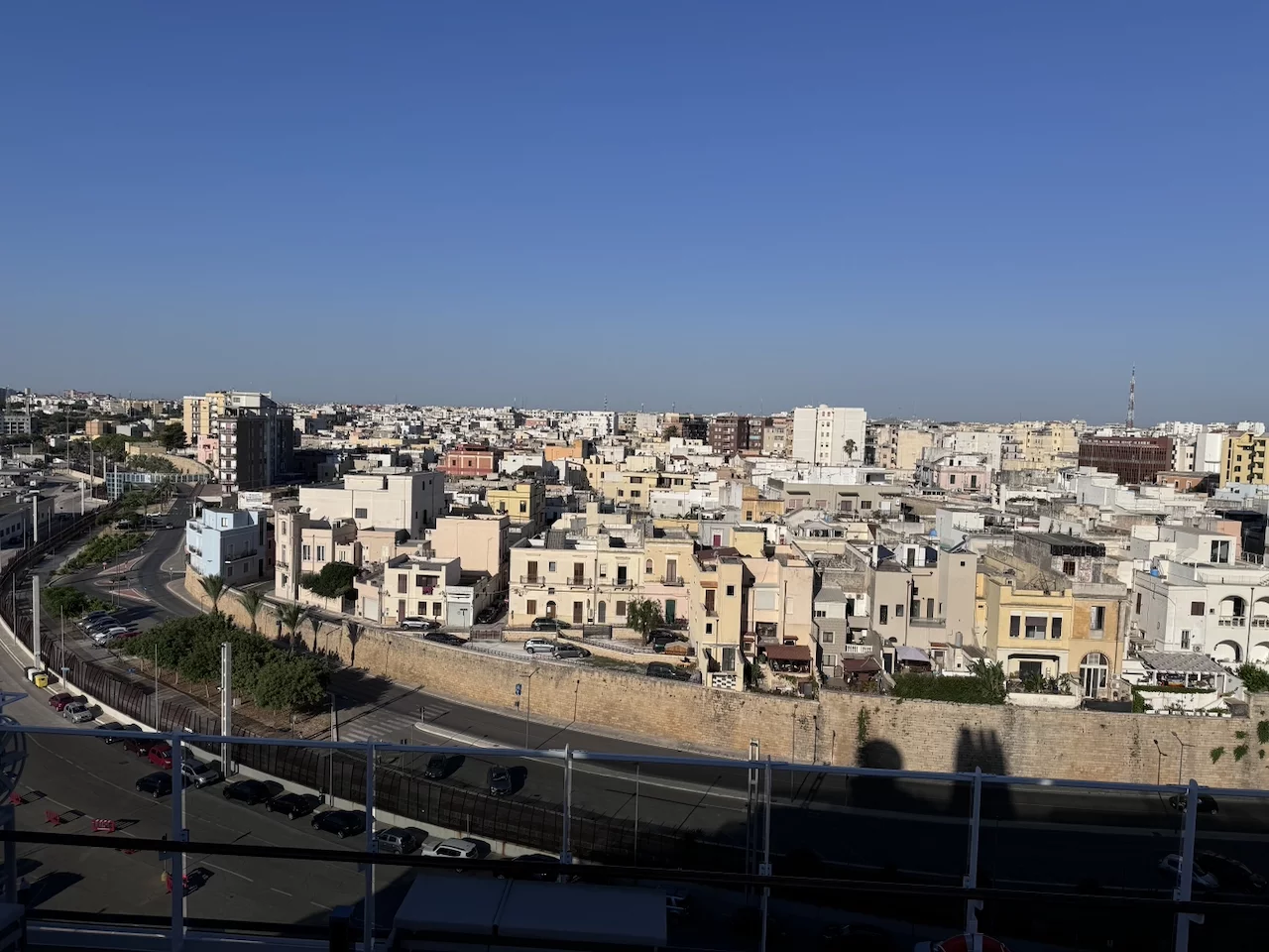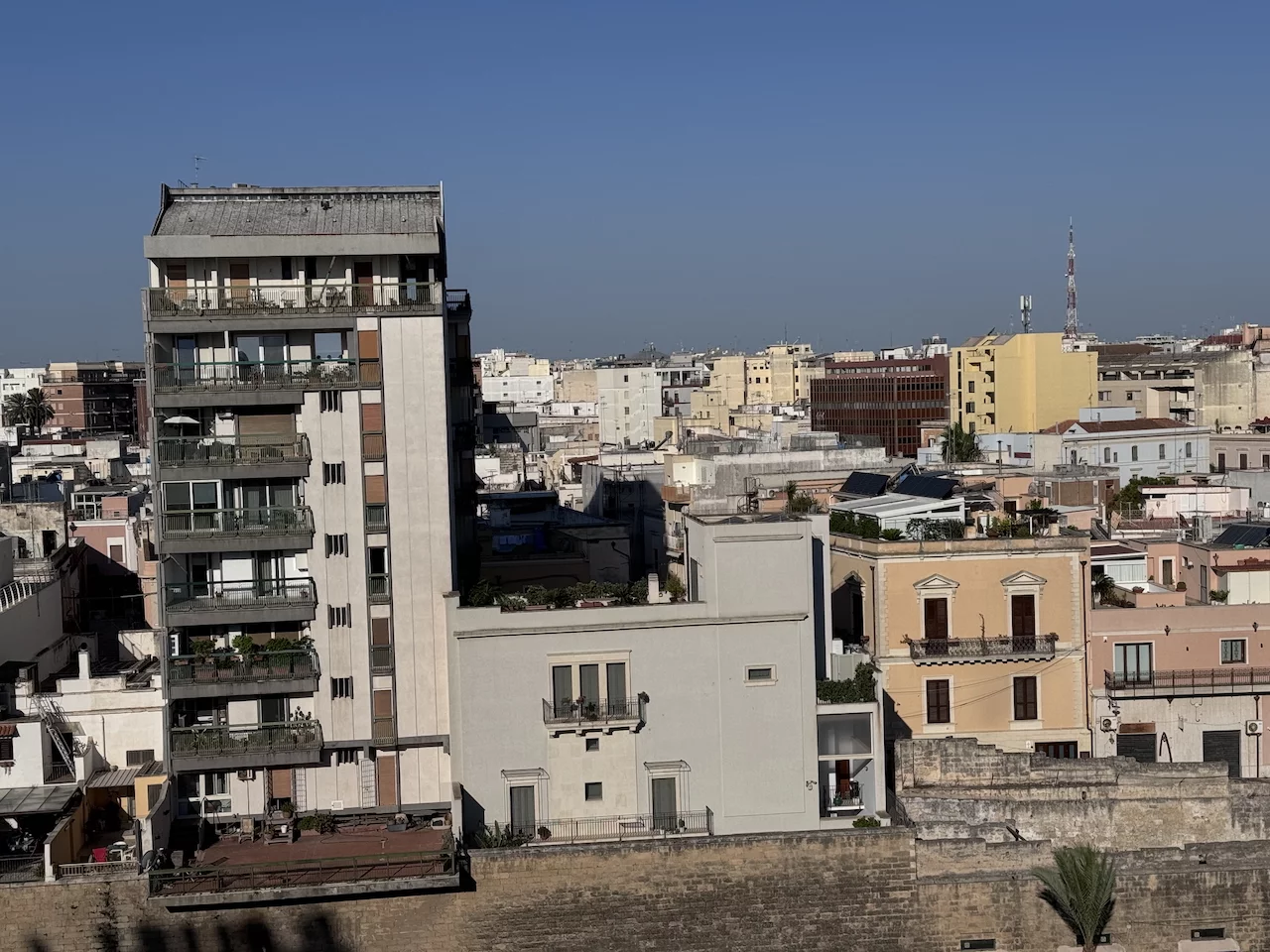 Der Blick von unserem Liegeplatz auf die "Skyline" der Stadt zeigte die typische Architektur größerer süditalienischer Städte.