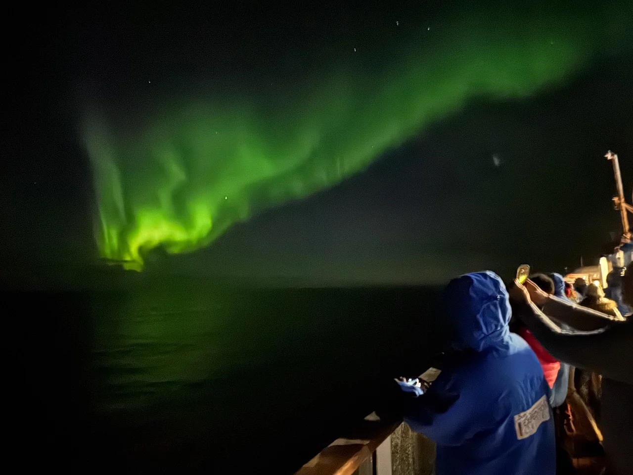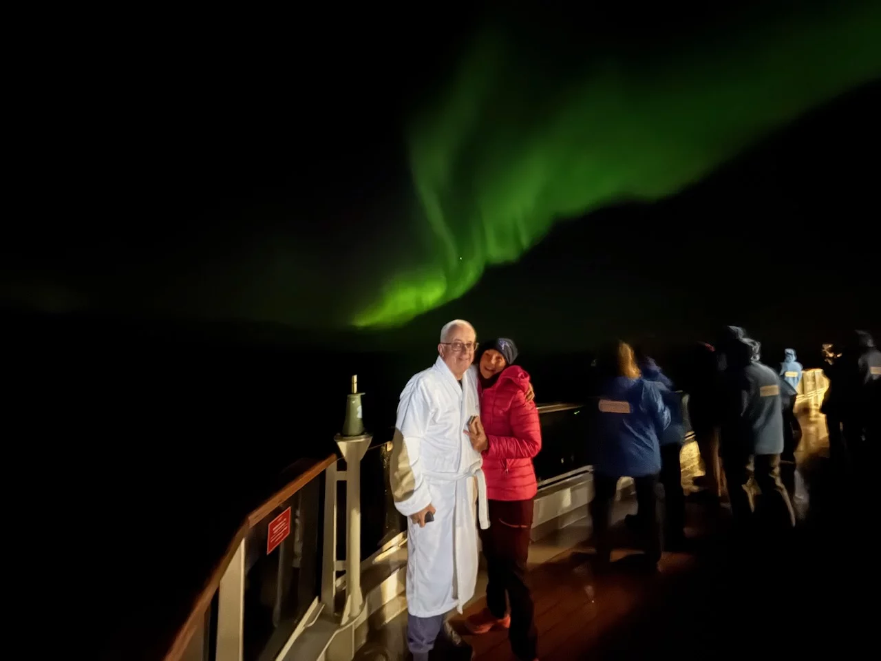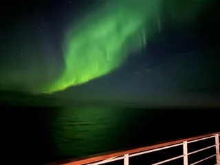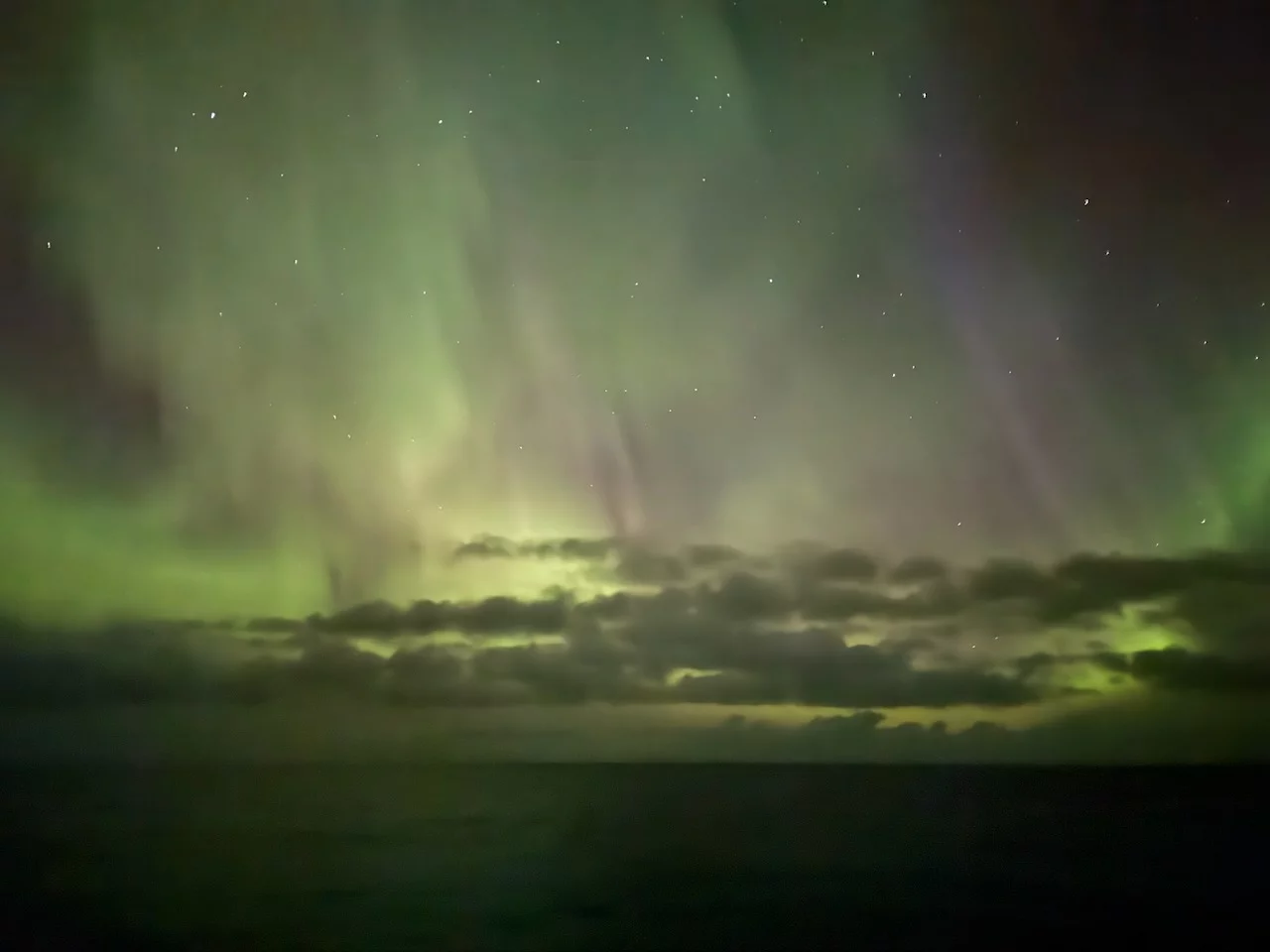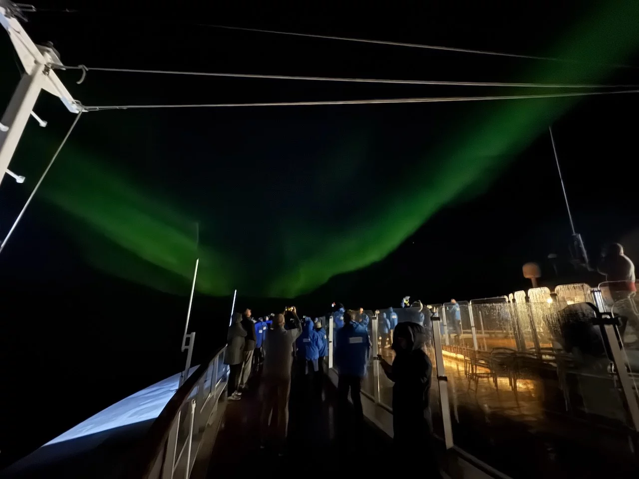 Und dann lagen wir bereits im Bett, da gab's noch ein überraschendes "Betthupferl", Polarlichter auf beiden Seiten des Schiffes.