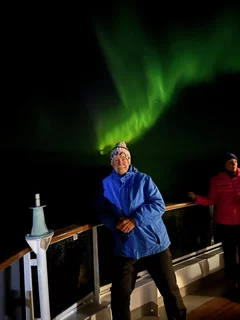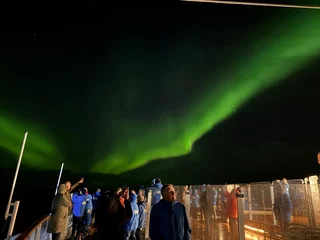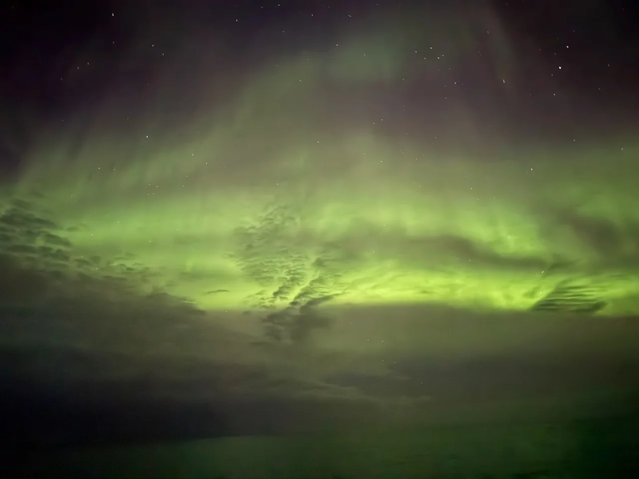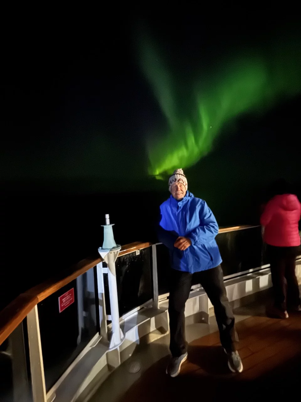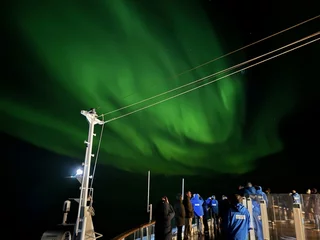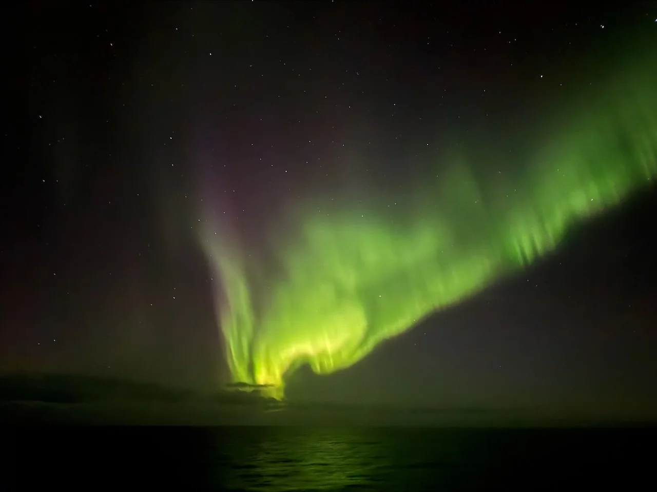 Und dann lagen wir bereits im Bett, da gab's noch ein überraschendes "Betthupferl", Polarlichter auf beiden Seiten des Schiffes.