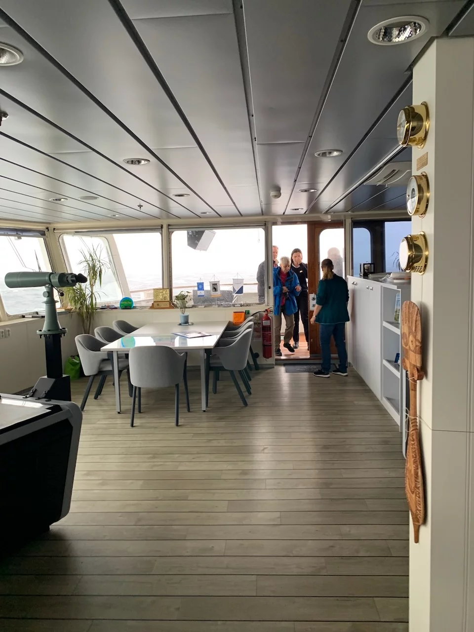 Das Wetter änderte sich zum späteren Nachmittag hin zwar zum besseren, doch dann kam die nächste „Hiobsbotschaft“ vom Käpt’n. An einer der beiden Maschinen war eine Leckage aufgetreten und für den Zeitraum der Reparatur stand nur eine Maschine zur Verfügung. Damit war unser heutiger Zeitplan endgültig Makulatur. Doch die Alternativlösung ließ nicht lange auf sich warten.
