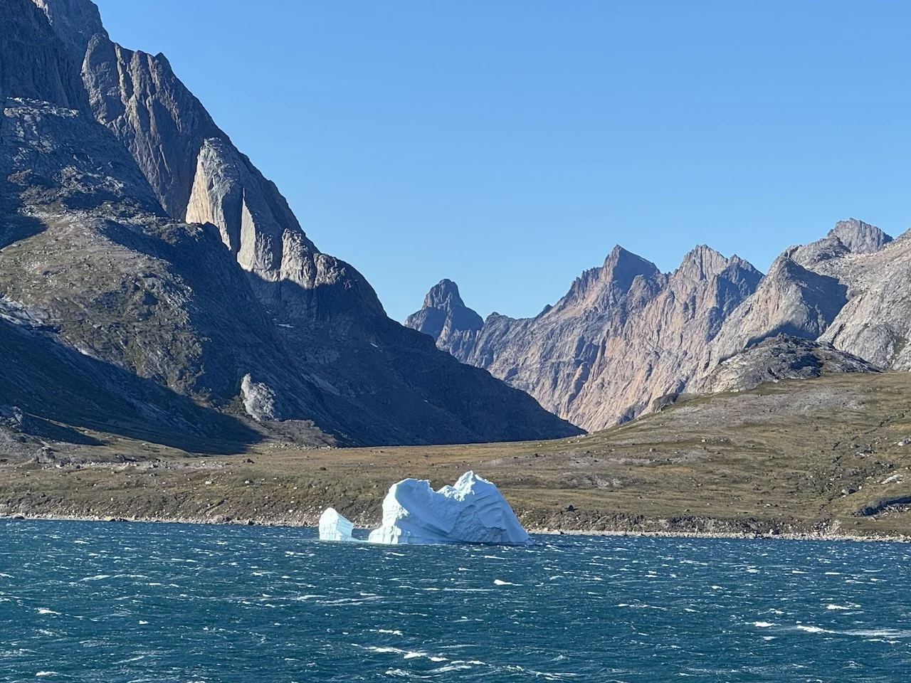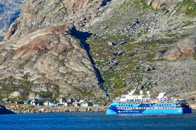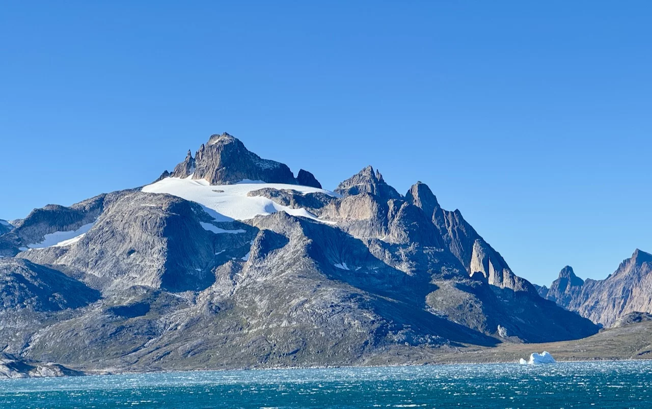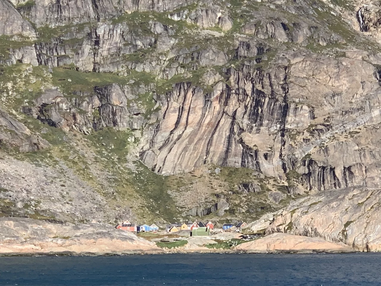 Mitten im Fjord liegt die kleine grönländische Siedlung Aappilattoq. Sie liegt auf einer kleinen Halbinsel an einer Stelle, wo sich drei Zuflüsse treffen. Hier leben 82 Menschen - Stand 01.01. 2025 - von Fischfang und der Jagd. Die Siedlung ist von 3 Seiten von Wasser dreier Zuflüsse des Fjords umgeben. Einzig im Norden wird sie nicht von Wasser abgetrennt, sondern von hochaufragenden Bergen.