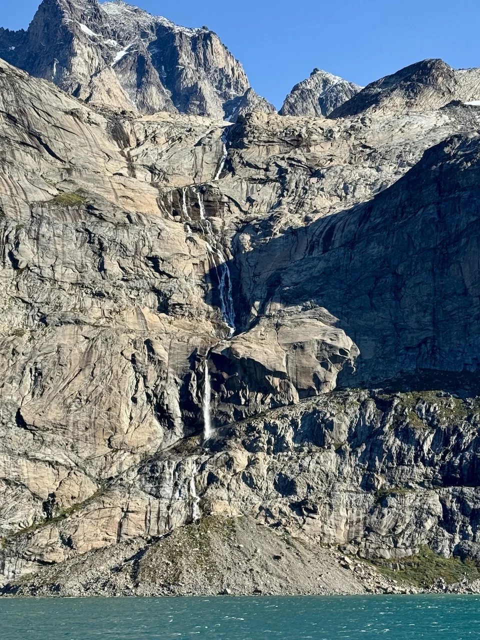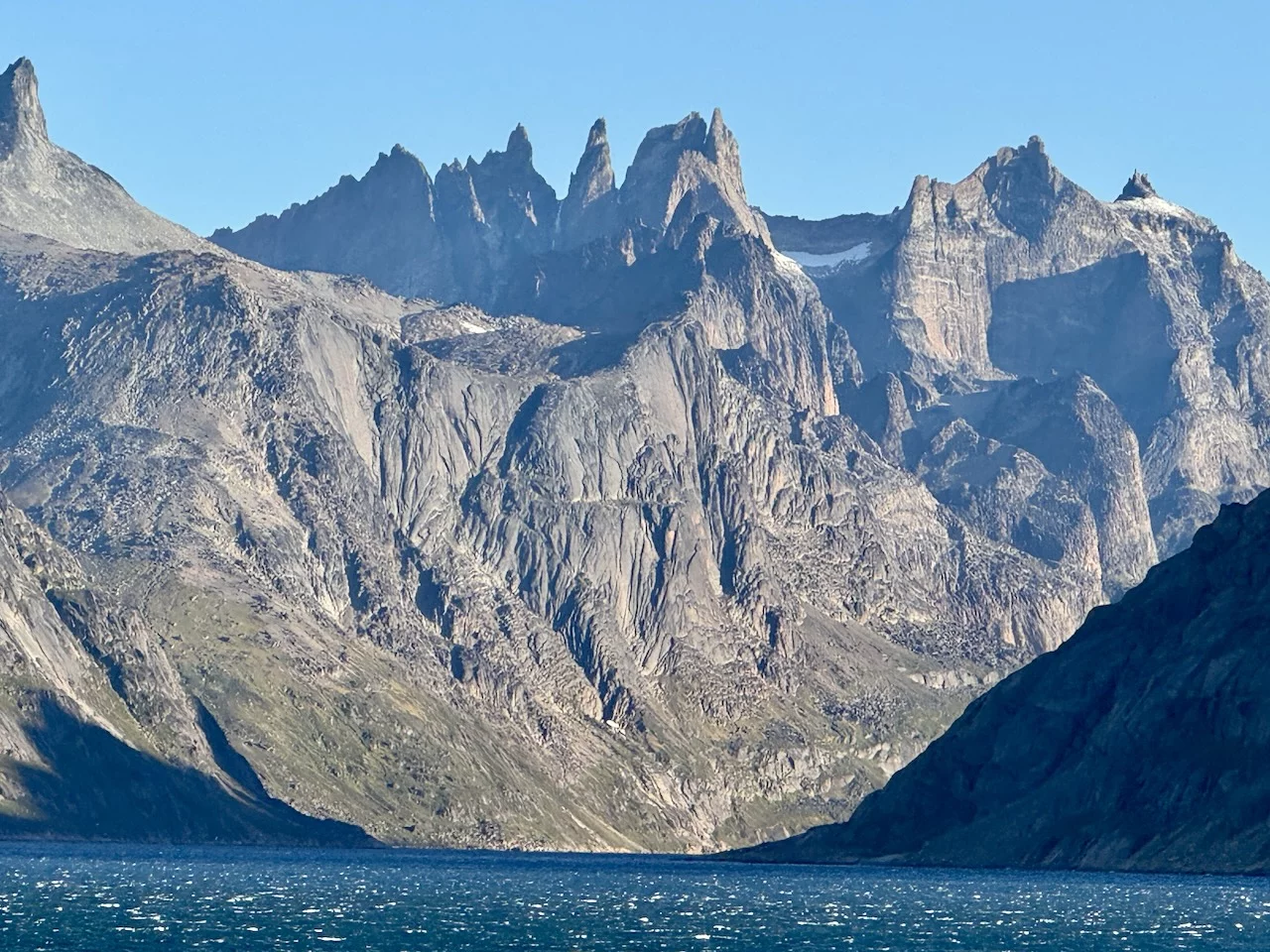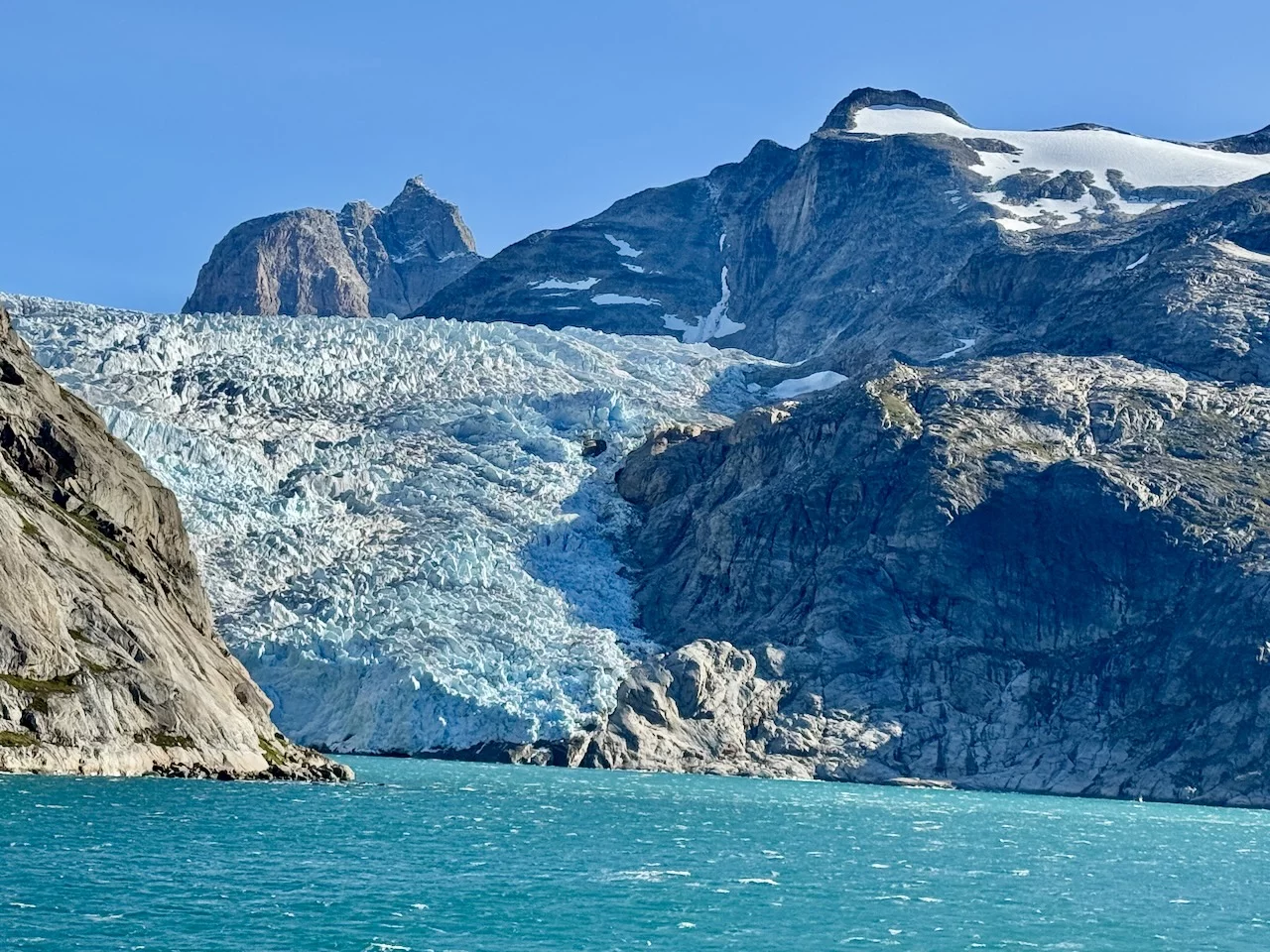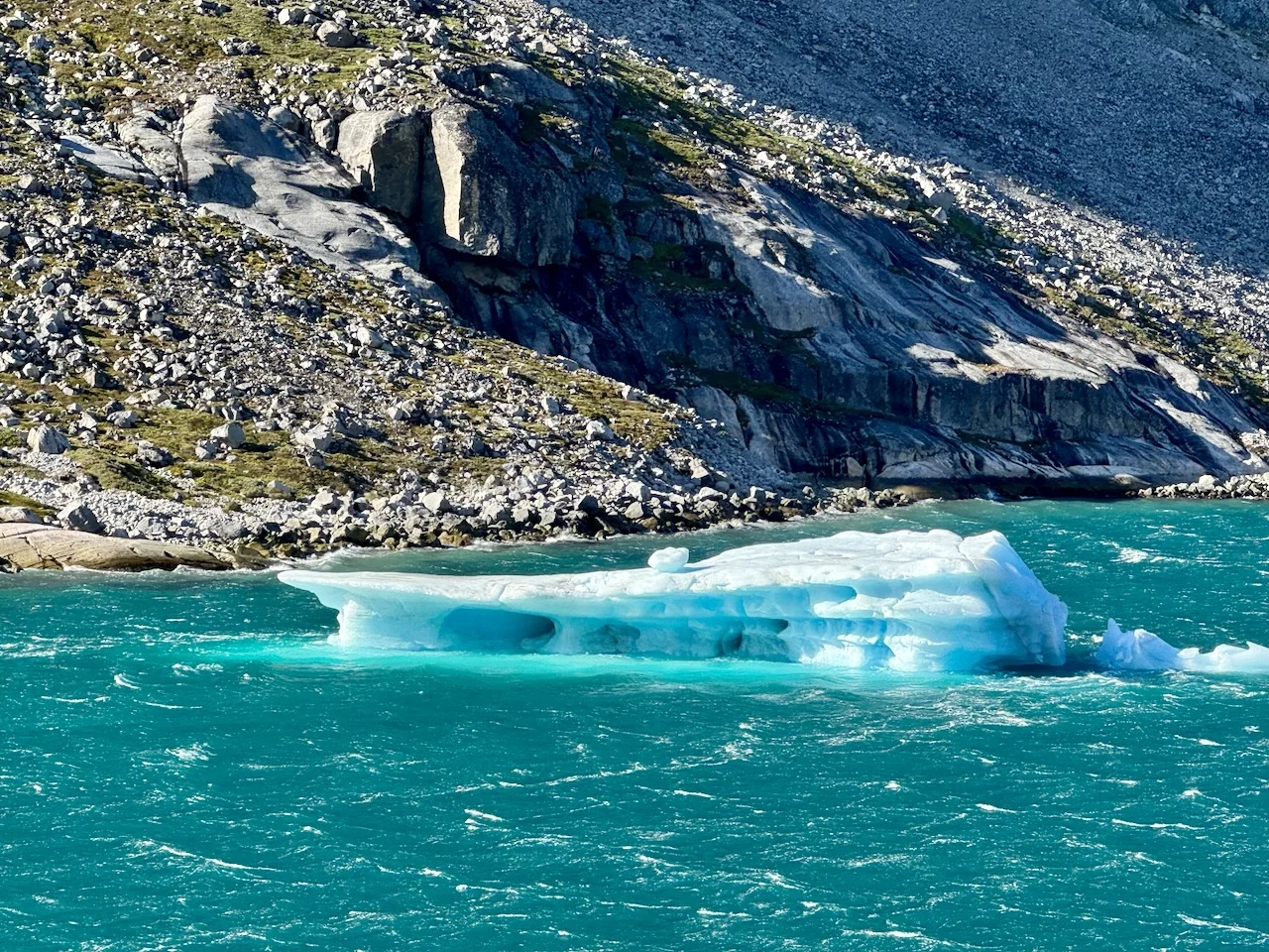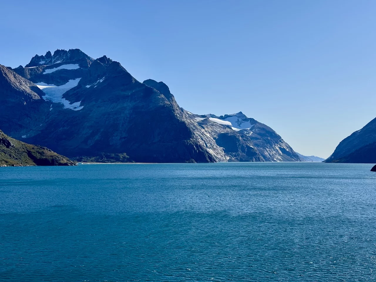 Das Wichtigste zuerst: Das Traumwetter von gestern hat gehalten. Die Fahrt durch den Prins Christian Sund war einfach nur unfaßbar schön. Bereits die Einfahrt war spektakulär.
