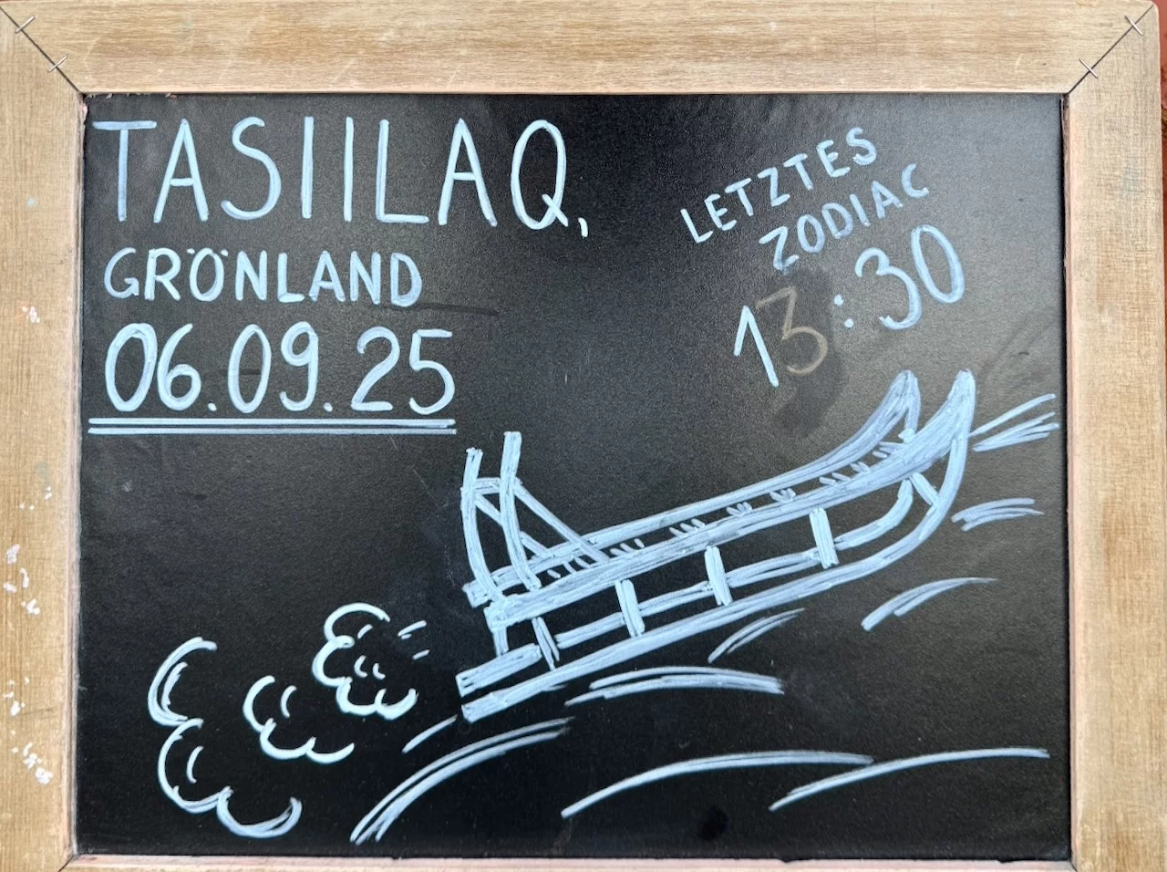 Unsere Ankunft in Ittoqqortoormiit ist für Montagmorgen 8:00 Uhr geplant. Ob wir das schaffen ist allerdings im Moment noch fraglich, denn in seiner „Morgenpredigt“ verkündet der Kapitän keine allzu guten Nachrichten. In der kommenden Nacht werden wir zum wiederholten Mal mit einem heftigen Sturmtief zu kämpfen haben, das von Norden heranzieht. Positiv ist, dass wir den Wind (7-9 Windstärken werden erwartet) direkt von vorne bekommen und deshalb das Schiff nicht rollt, sondern „nur“ stampft.
