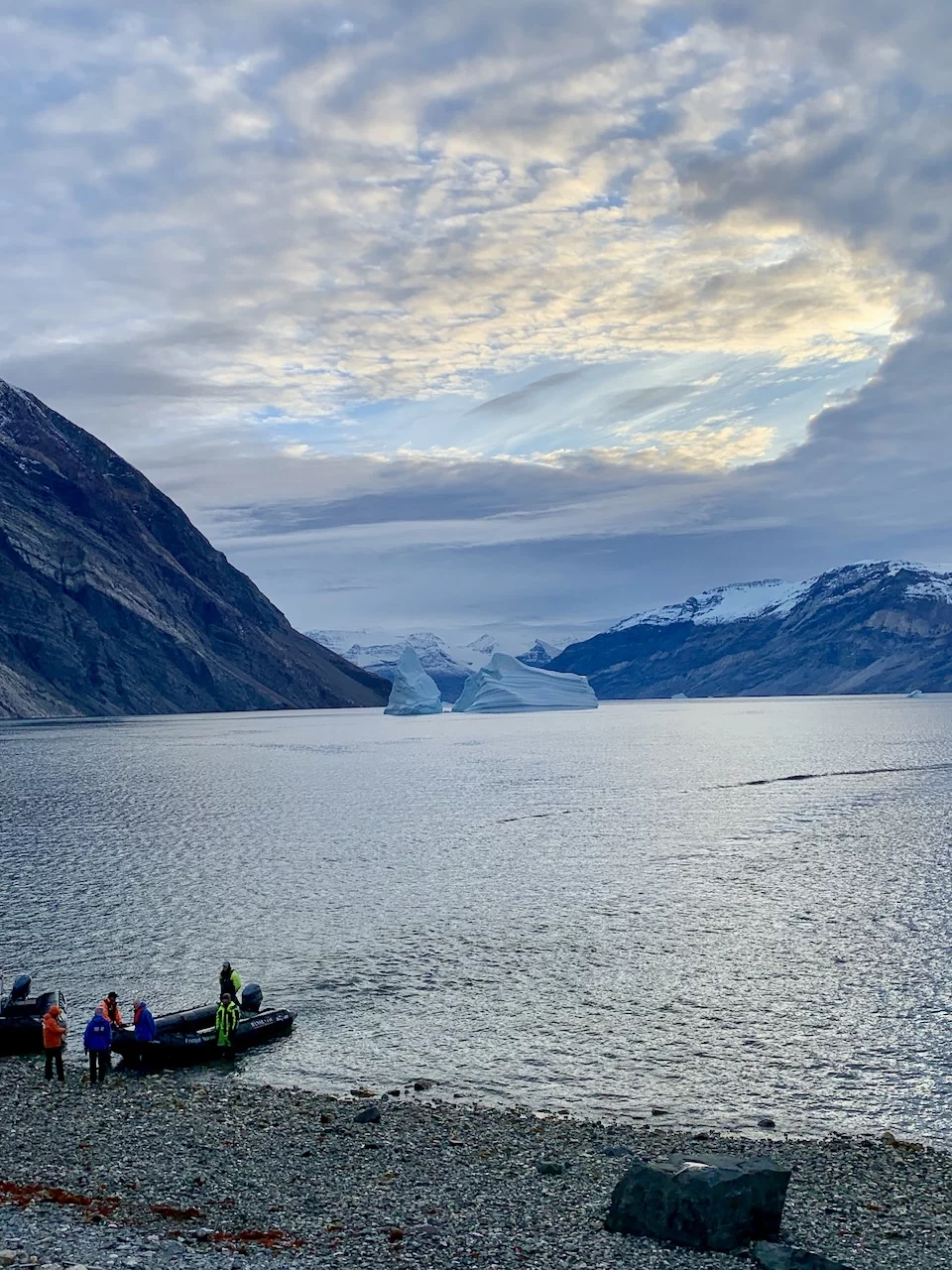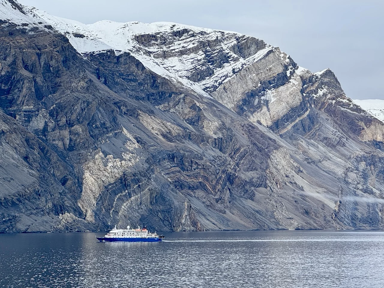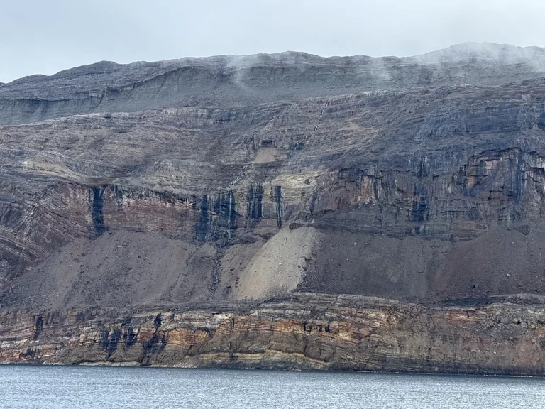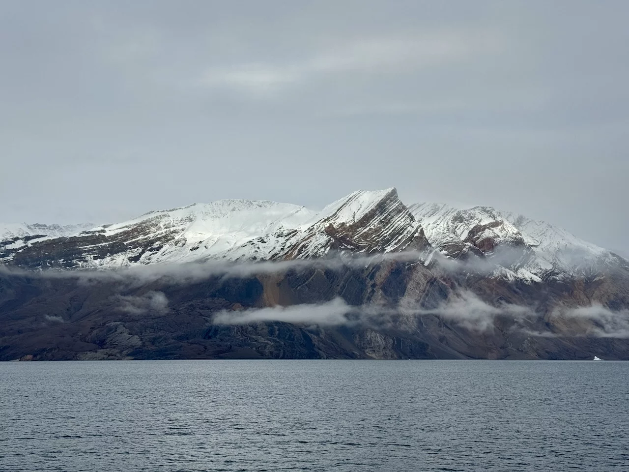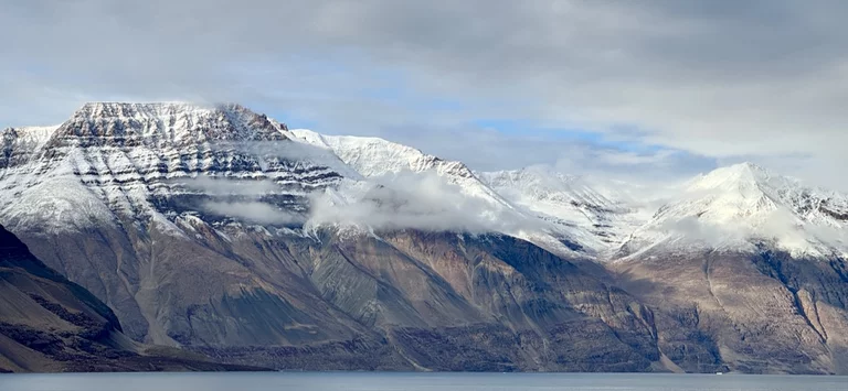 Das Ziel für die erste Ausfahrt am Morgen wird die Insel Ella Ø. Sie liegt im weit verzweigten Kong Oscar Fjord, ist rund 100 qkm groß und von bis zu 2000m hohen Bergen umgeben. Vulkanische Aktivitäten hinterließen dunkle Basalte und kontrastreiche Schichtungen im Gestein, die in Kombination mit hellem Granit und rötlichem Sandstein für eine große Farbvielfalt der Insel sorgen.