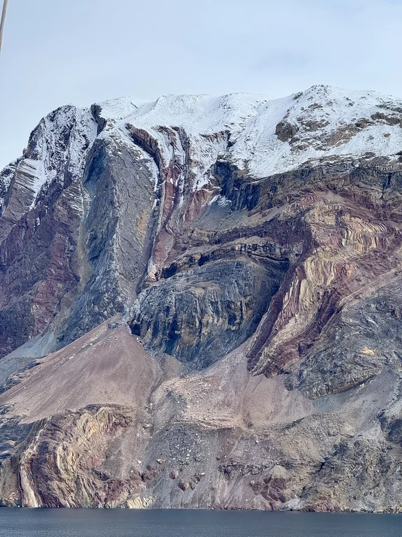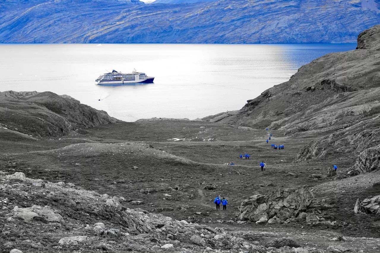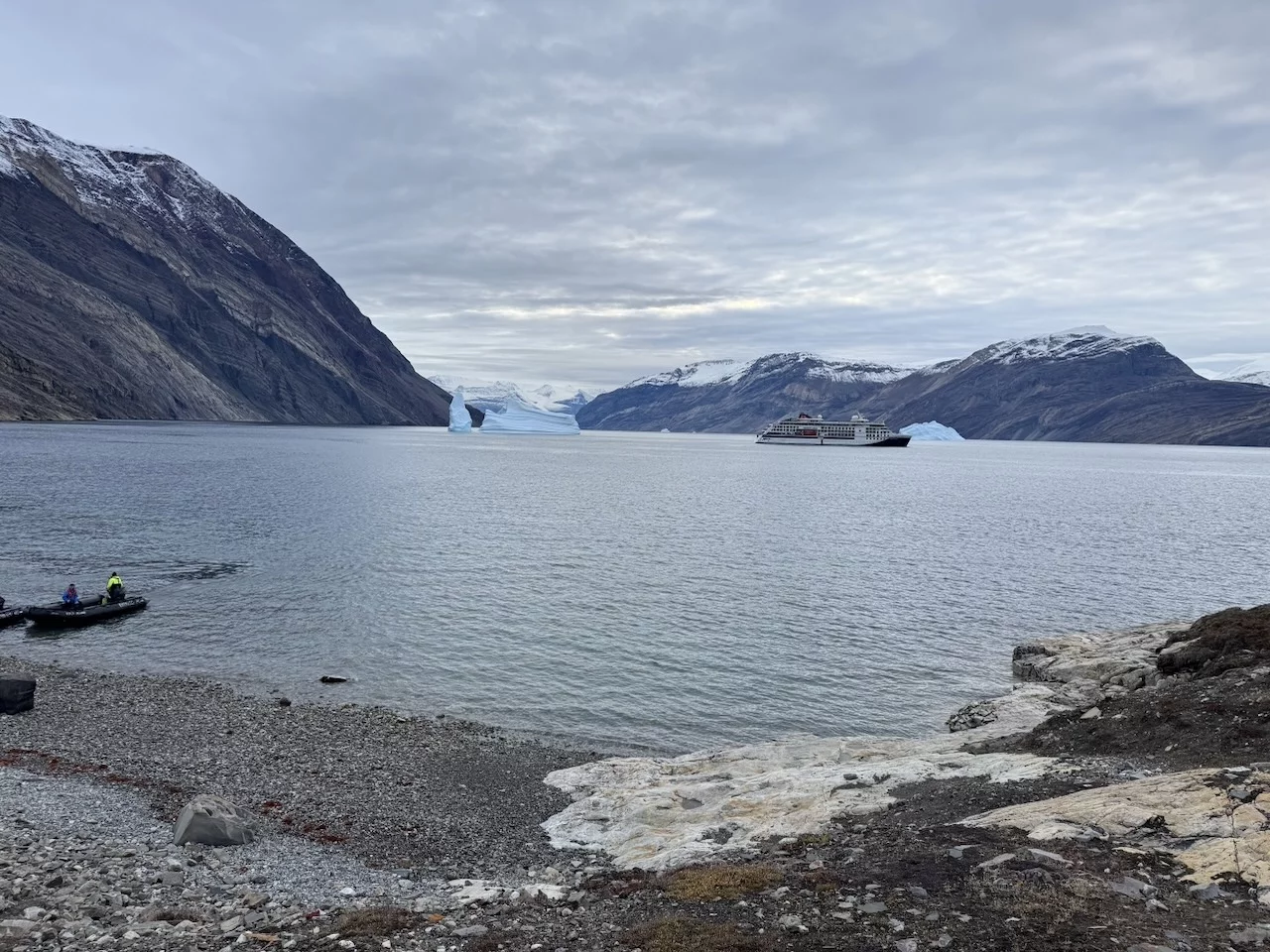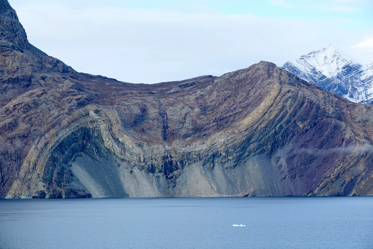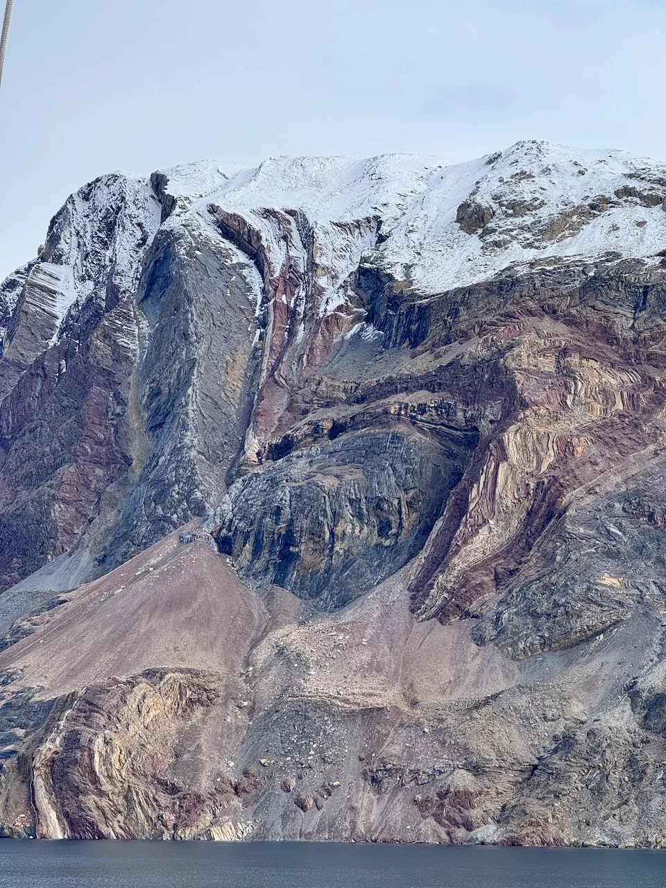 Das Ziel für die erste Ausfahrt am Morgen wird die Insel Ella Ø. Sie liegt im weit verzweigten Kong Oscar Fjord, ist rund 100 qkm groß und von bis zu 2000m hohen Bergen umgeben. Vulkanische Aktivitäten hinterließen dunkle Basalte und kontrastreiche Schichtungen im Gestein, die in Kombination mit hellem Granit und rötlichem Sandstein für eine große Farbvielfalt der Insel sorgen.