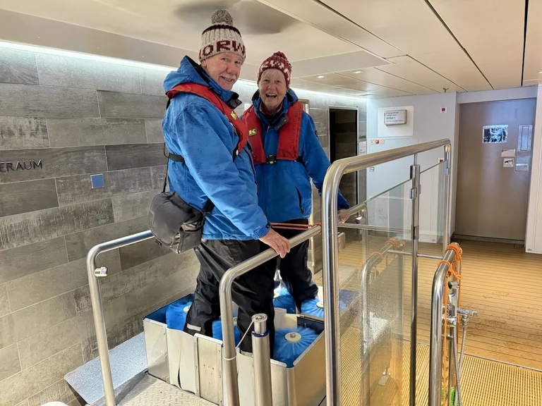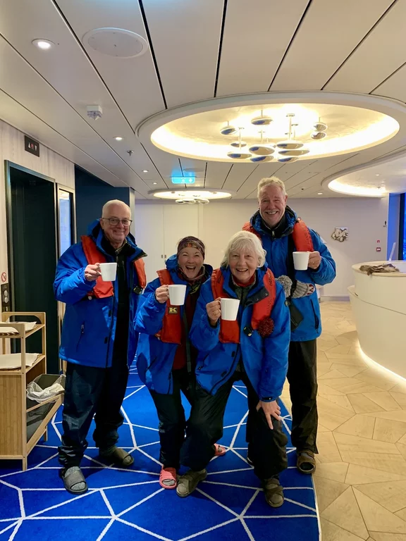 Heute zum Beispiel hieß es früh aus den Federn zu kommen. Es waren zwei Zodiac-Ausfahrten geplant, die bereits um 6:30 Uhr für die erste Zodiac-Gruppe und um 8:30 für die zweite Zodiac-Gruppe begannen. Wir hatten heute Glück, denn wir waren in der zweiten Zodia-Gruppe, diesmal die letzte Farbgruppe, die aufgerufen wurde. Somit konnten wir etwas länger schlafen und vor der Ausfahrt auch noch in Ruhe frühstücken.