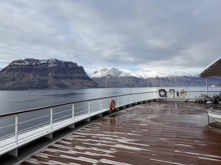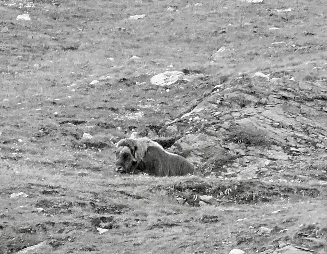 Abgesehen von einem Moschusochsen in weiter Ferne haben wir auch heute wieder kein Glück mit Tiersichtungen gehabt. Wobei das eigentlich für die ganze Reise gilt. Weitere Möglichkeiten wird es vermutlich auch nicht geben, denn wir sagen Grönland morgen Mittag Adieu und machen uns auf dem Weg nach Island.