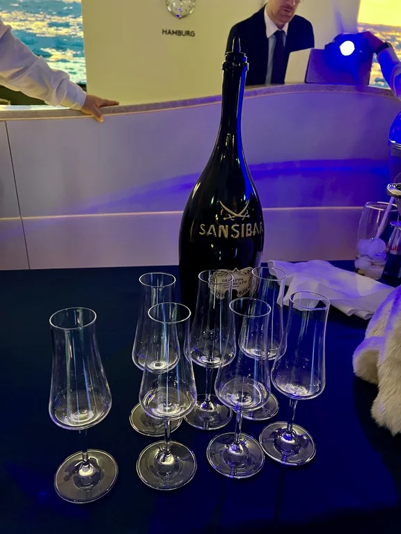Nach dem Abendessen gab es dann noch eine Überraschung an der Rezeption. Diese war während des Dinners zu einer schnuckeligen Bar umgebaut worden. Hier gab es dann ein großes Angebot an Digistifes und andere leckeren Absackern, wie z.B. einen in Ehren gereiften Safari-Grappa aus der 3,5 Liter Magnumflasche. Künstlerisch serviert von Hoteldirektor Christof.