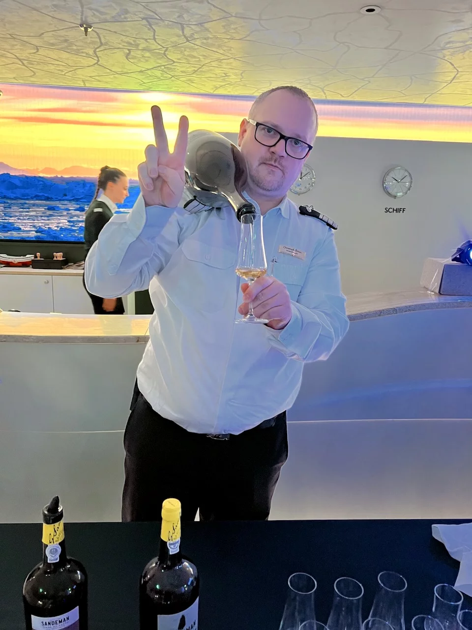 Eine willkommene Abwechslung an einem Seetag, an dem es außer ein paar Seevögeln nur reichlich Wasser zu sehen gab. Wale, Delphine oder ähnliches Getier liessen sich, wie schon auf der gesamten Kreuzfahrt, leider nicht blicken.