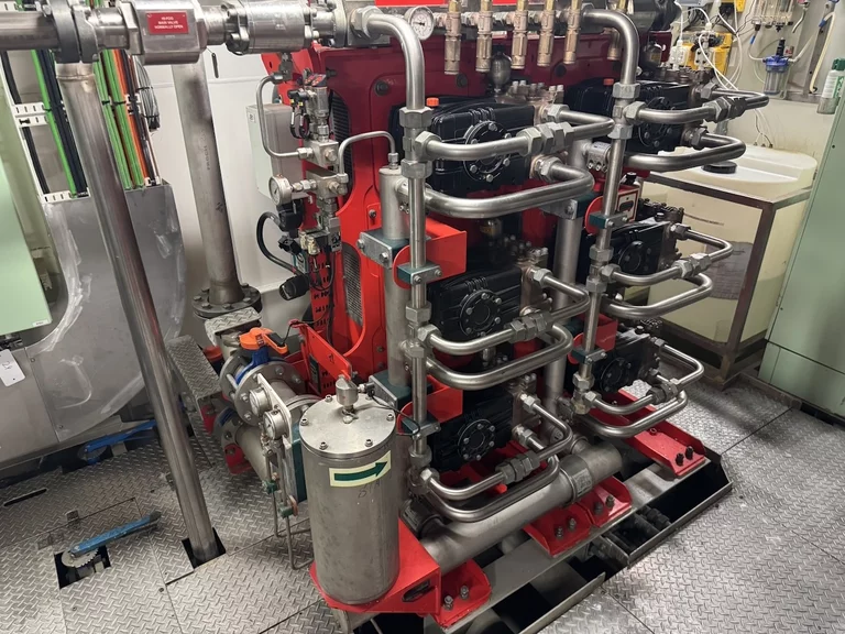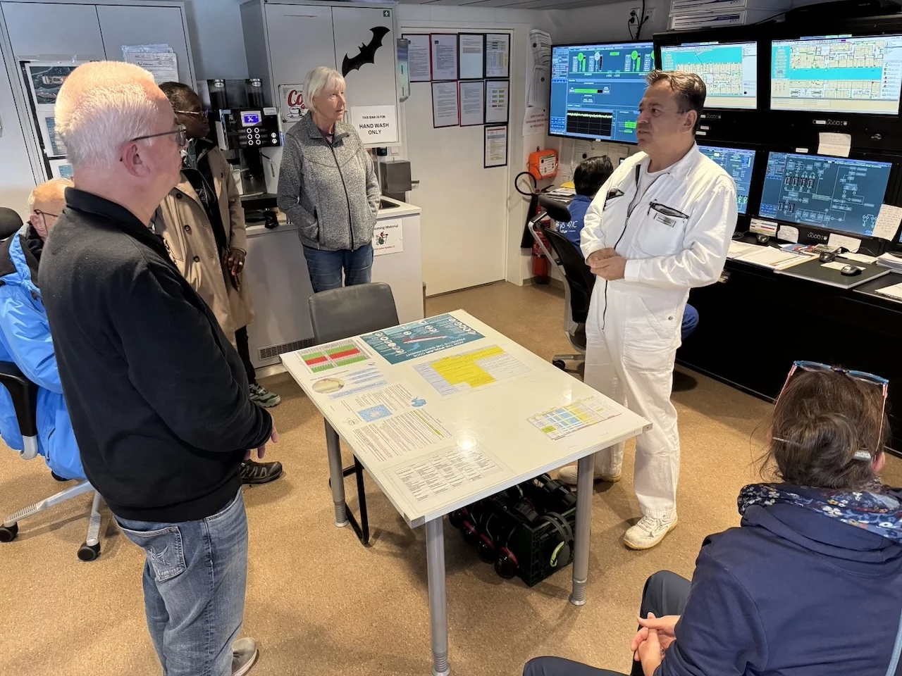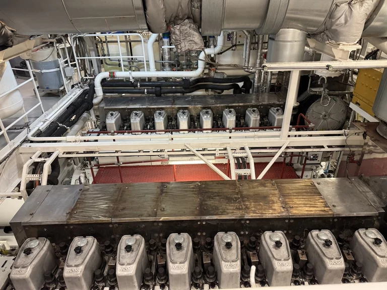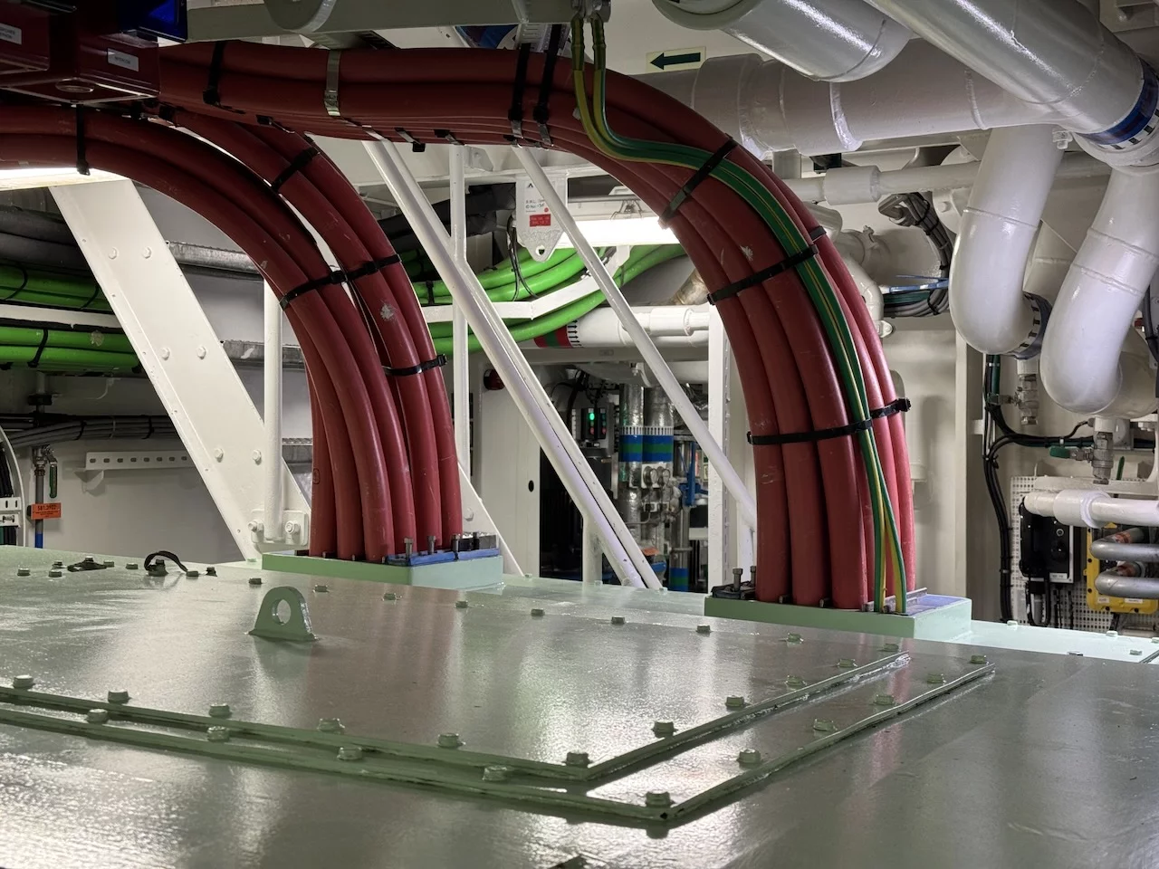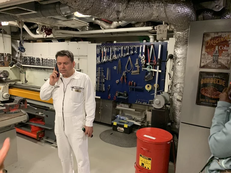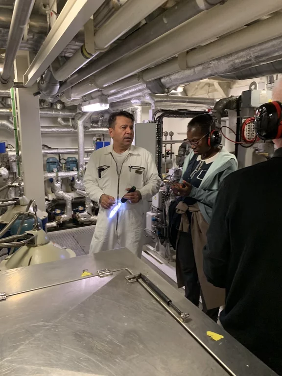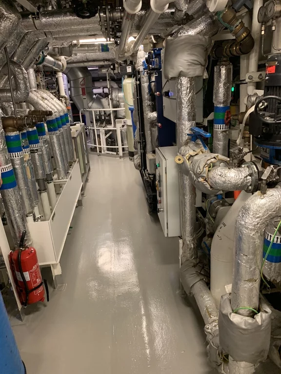 Am Nachmittag gab es für uns mit der Besichtigung des Maschinenraums noch ein kleines Highlight. Der Chief Engineering höchstpersönlich gab sich die Ehre und stellte uns sein „Baby“,wie er es nannte, im Detail vor. Zunächst bekamen wir im Kontrollraum ein wenig technische Hintergrundinformationen, dann folgte ein Rundgang treppauf/treppab durch die verschiedenen Bereiche des Maschinenraums. Beeindruckend nicht nur in technischer Hinsicht, sondern auch mit Blick auf die Arbeitsbedingungen der Crew hier unten. Es ist in den meisten Bereichen sehr heiß und vor allem seeeehhhr laut!!!. Ohne Gehörschutz nicht auszuhalten. Trotzdem war es sehr interessant und lehrreich!!