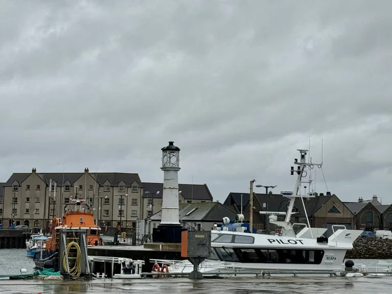 Gegen 07:00 Uhr erreichen wir die kleine Pier vor Kirkwall auf den Orkneys. Der Wind bläst auflandig und drückt uns mit über 20 Knoten kräftig in Richtung Anleger. Das macht das Anlegemanöver zu einer kleinen Herausforderung. Ein Hafenschlepper kommt zur Unterstützung und mit einer Portion Geduld, einigen eleganten Manövern und viel Fingerspitzengefühl der Brückencrew liegt die HANSEATIC nature schließlich sicher vertäut vor Kirkwall.