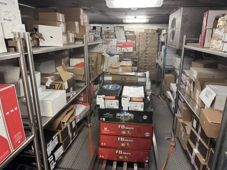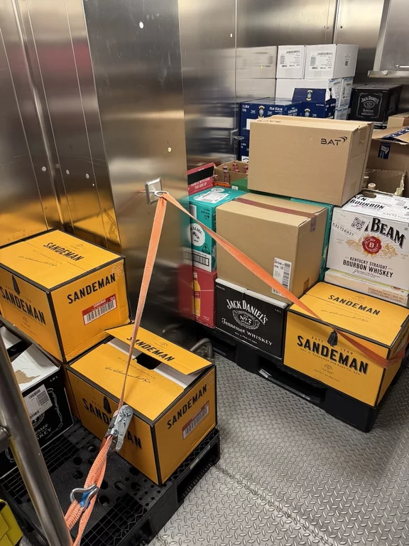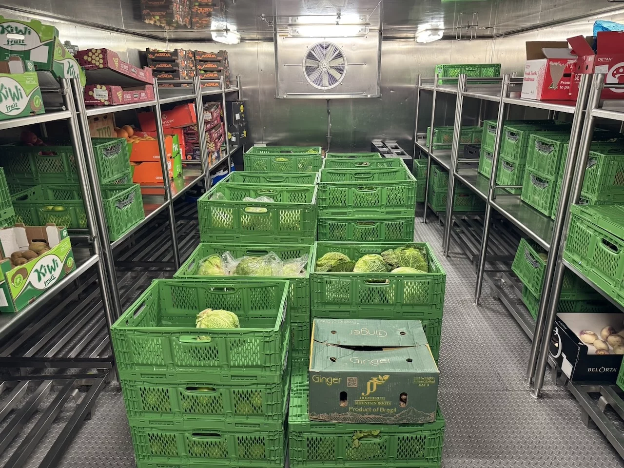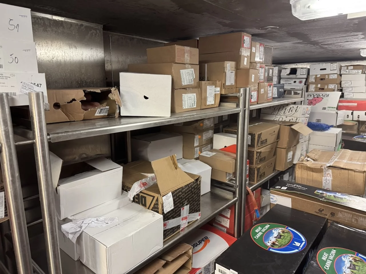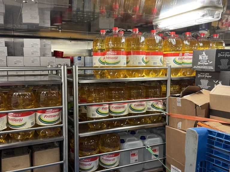 Für uns stand heute nachmittag neben Kofferpacken noch eine Einladung des Hoteldirektors für „Eine kleine Entdeckungsreise an Bord der HANSEATIC nature“ auf dem Programm. Der Treffpunkt war interessanterweise die Gummistiefelwaschanlage auf Deck 3. Es gab aber nichts zu putzen, sondern dahinter ist die Tür, die zu den Lager- und Provianträume der HANSEATIC nature auf Deck 2 führt. Hier bekamen wir einen kleinen Überblick, wie die Logistik auf einem Expeditionsschiff dieser Größe funktioniert. Wir durften einen Blick in die Kühlkammern werfen, wo all' die leckeren Sachen lagern, die wir in den letzten 19 Tagen genießen durften. Es sieht zwar nicht unbedingt spektakulär aus, aber die Disposition hinter dieser Versorgung folgt einem sehr ausgeklügelten System. Bis zu 60 Tonnen an Lebensmittel und Getränken können hier unten gebunkert werden.