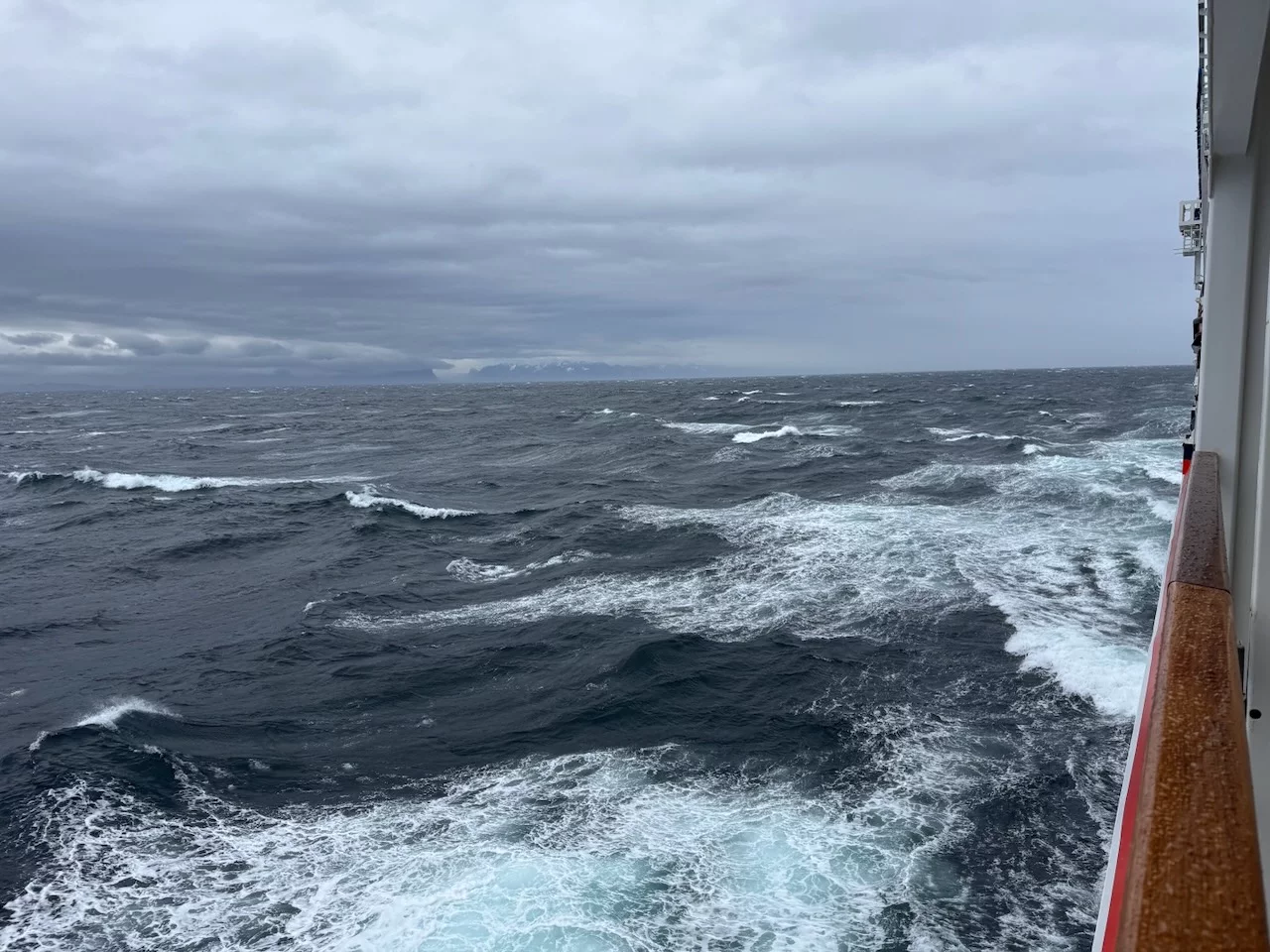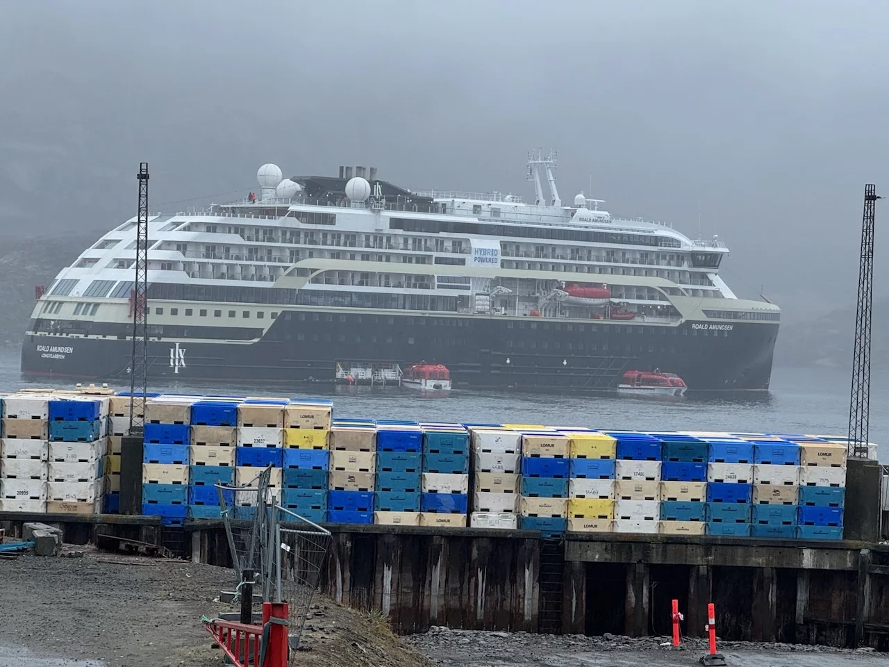 Nach einem kurzen Besuch im Museumsdorf haben wir uns aufgrund des immer schlechter werdenden Wetters zum Schiff zurück begeben. Das war auch insofern keine schlechte Idee, da kurz vorher die Roald Amundsen von Hurtigruten Expeditions relativ dicht neben uns vor Anker ging und knapp 400 Passagiere mit Tenderbooten an Land gebracht wurden. Damit ist das Museumsdorf definitiv übervölkert.