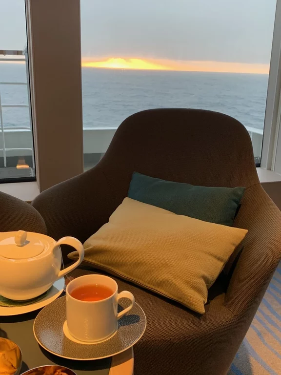 Wir haben den Tag bei einem traumhaften Sonnenuntergang in der Observation Lounge ausklingen lassen. Morgen geht es dann weiter nach Ilulissat zum Eisfjord.
