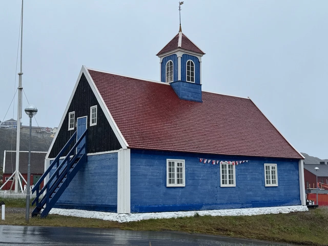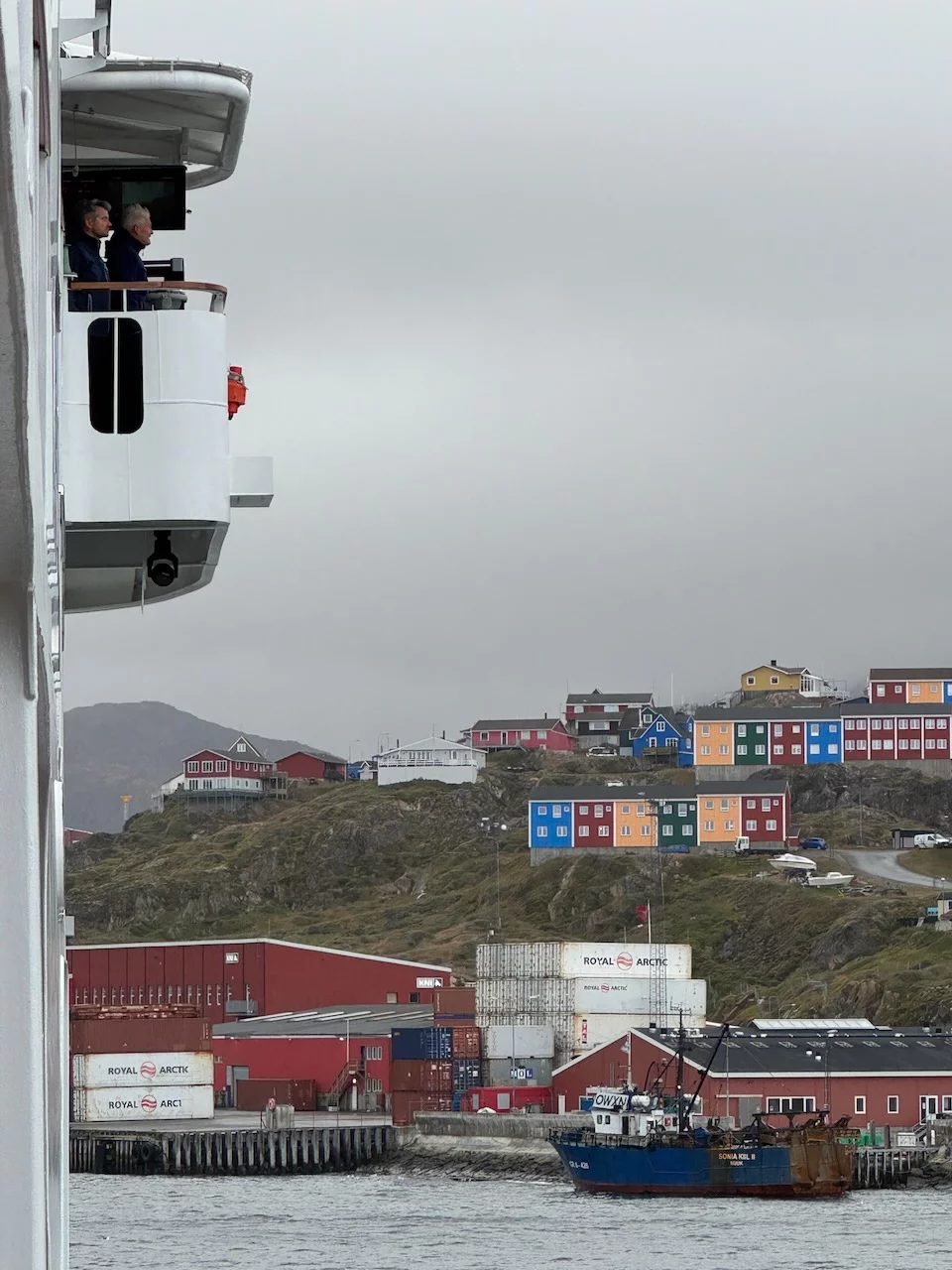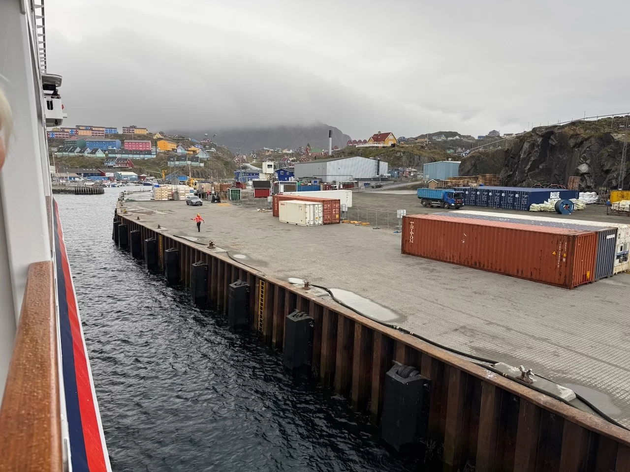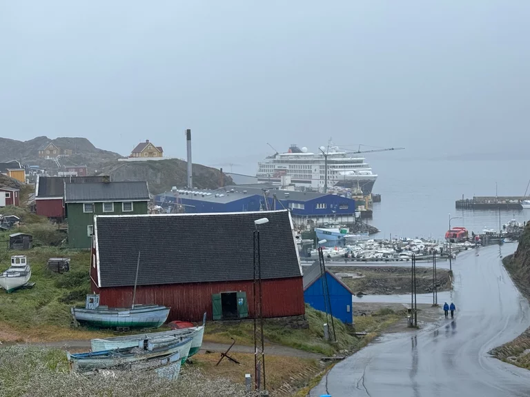 Pünktlich um 12:00 Uhr war die HANSEATIC nature an der Pier in Sisimiut fest. Das Wetter war allerdings nicht unbedingt eine Einladung für einen Stadtrundgang. Regen und Wind entsprachen exakt der gestrigen Vorhersage des Kapitäns. Es hat uns nicht zu tief getroffen, denn im letzten Jahr hatten wir hier echtes Wetterglück und haben die zweitgrößte Stadt Grönlands bei sonnigem Wetter erkunden können.