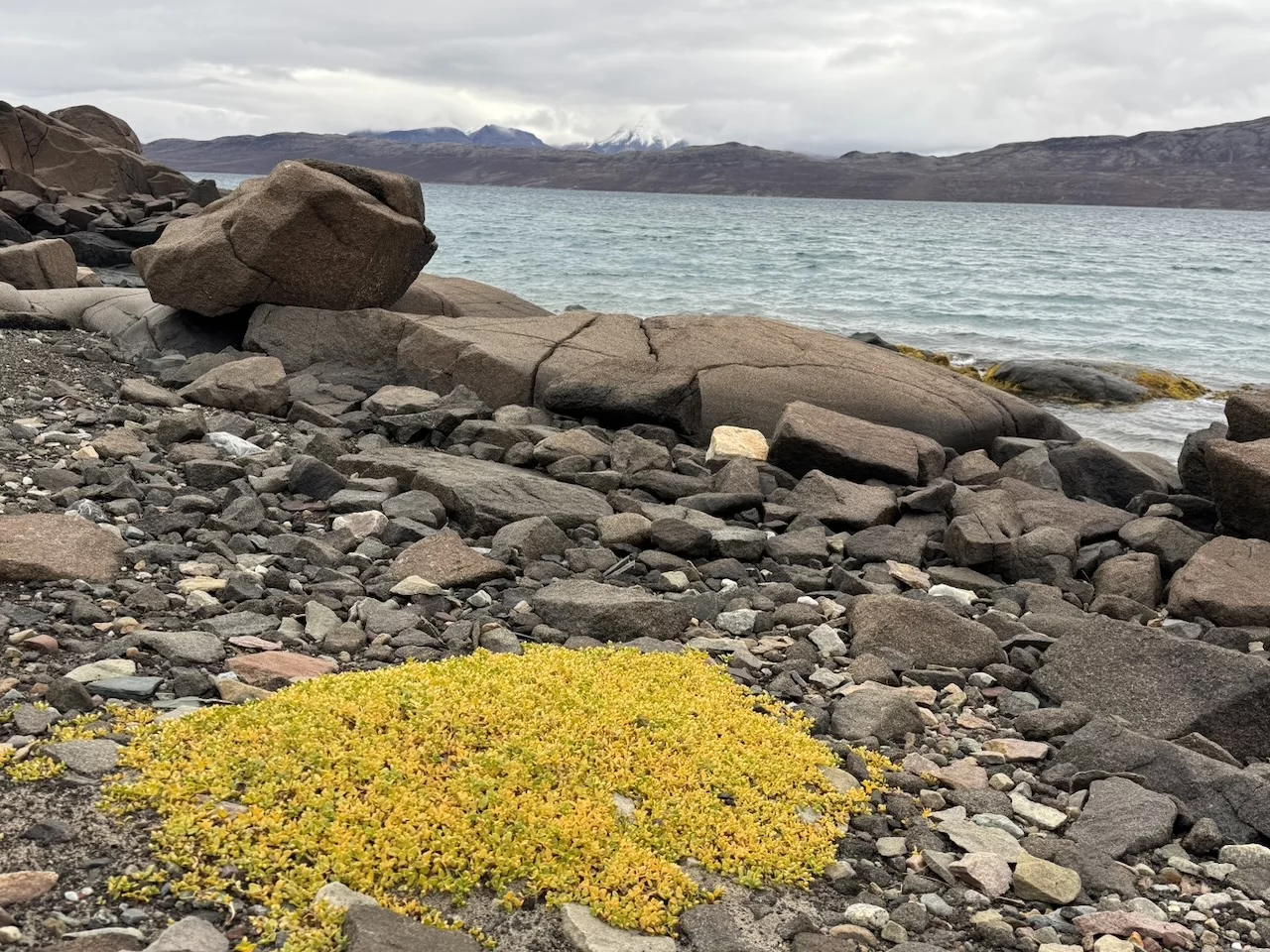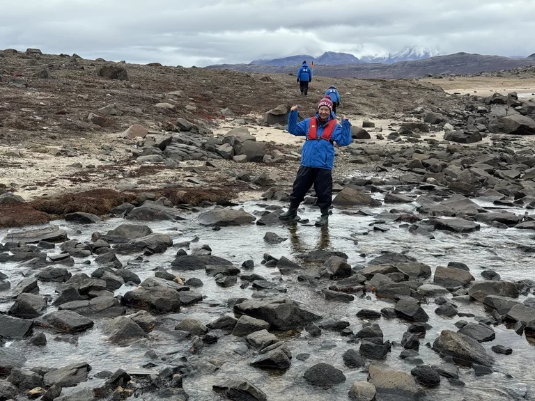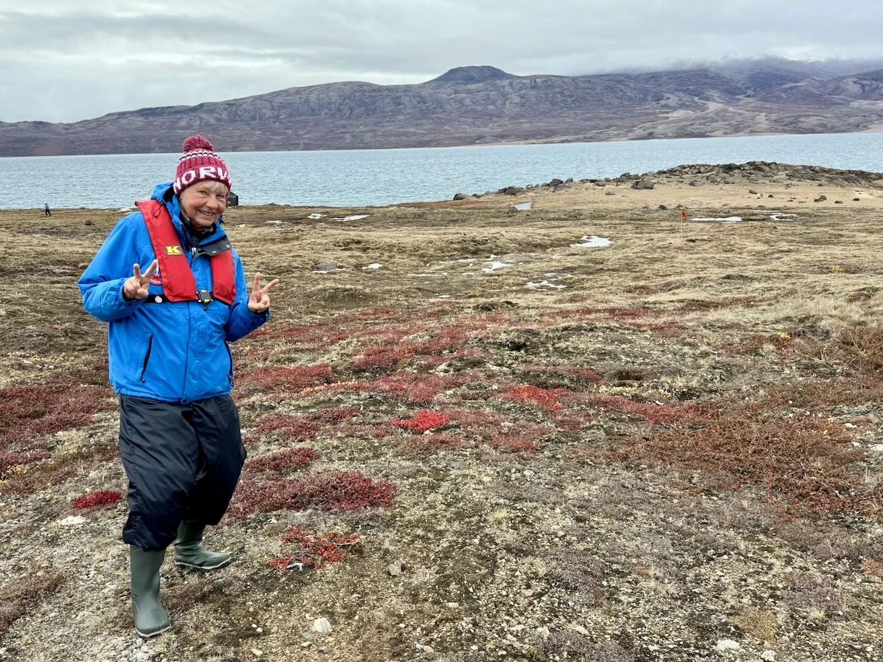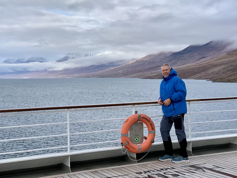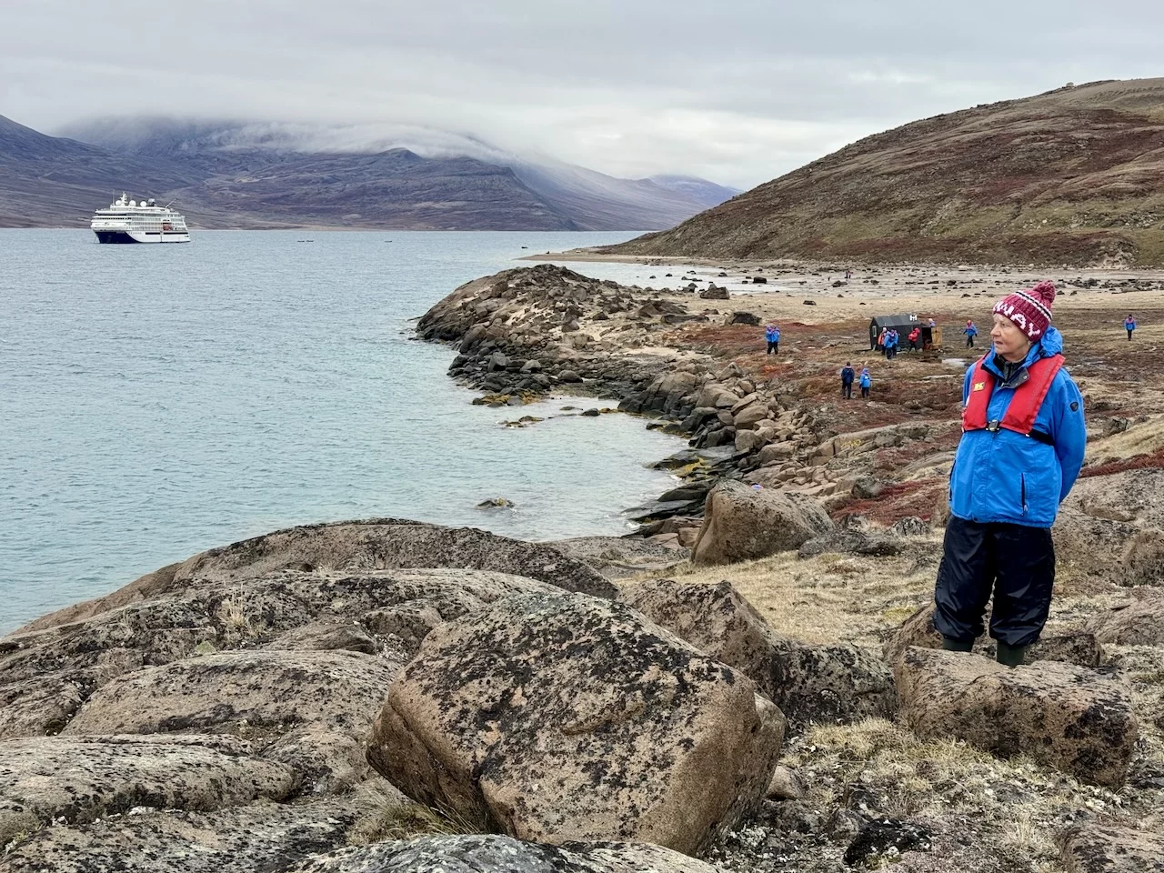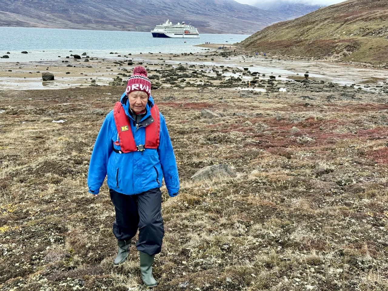 Nach der kurzen Einweisung durch Expertin Sarah bei der Ankunft an Land konnten wir losziehen und uns innerhalb eines durch 7 (!!) Eisbär-Wächter abgegrenzten Gebiets frei bewegen. Auch hier hat uns die Natur der Tundra trotz der frühen Stunde wieder in ihren Bann gezogen. Die Ausblicke auf den von hohen, steil aufragenden Bergen eingerahmten Sund werden nie langweilig. Man hat die Entstehungsgeschichte unseres Planeten direkt vor Augen.