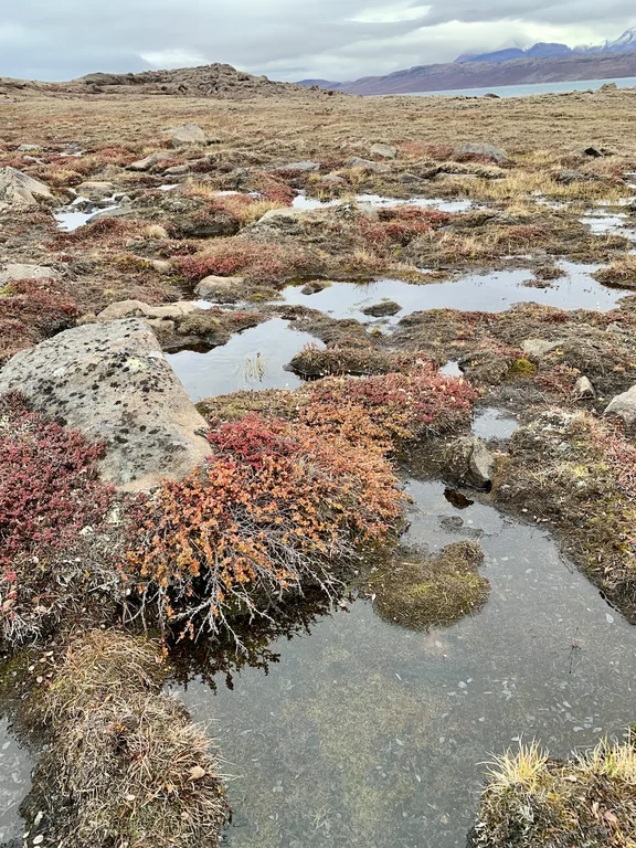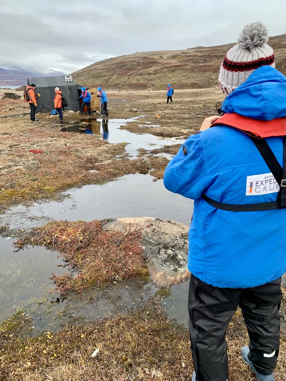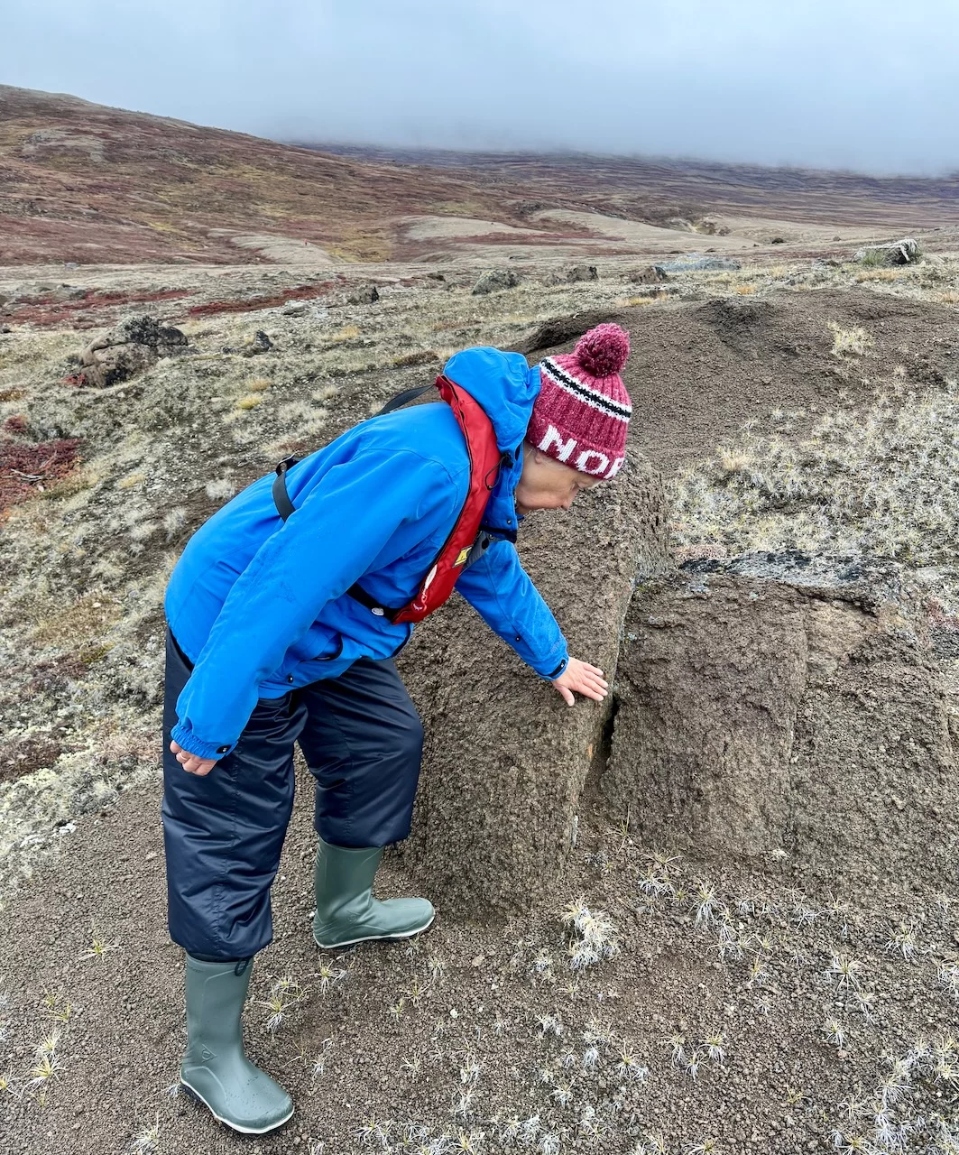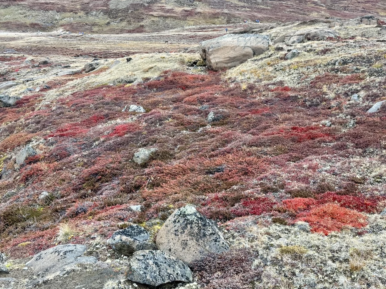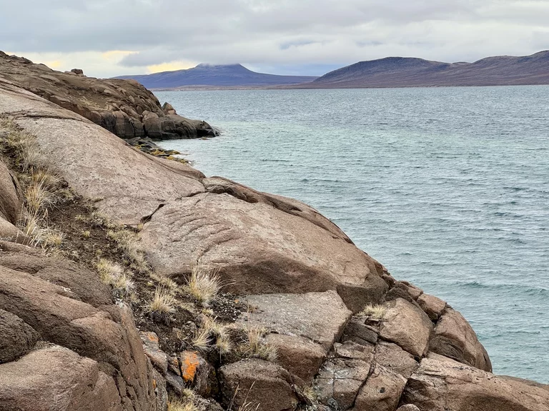 Nach der kurzen Einweisung durch Expertin Sarah bei der Ankunft an Land konnten wir losziehen und uns innerhalb eines durch 7 (!!) Eisbär-Wächter abgegrenzten Gebiets frei bewegen. Auch hier hat uns die Natur der Tundra trotz der frühen Stunde wieder in ihren Bann gezogen. Die Ausblicke auf den von hohen, steil aufragenden Bergen eingerahmten Sund werden nie langweilig. Man hat die Entstehungsgeschichte unseres Planeten direkt vor Augen.